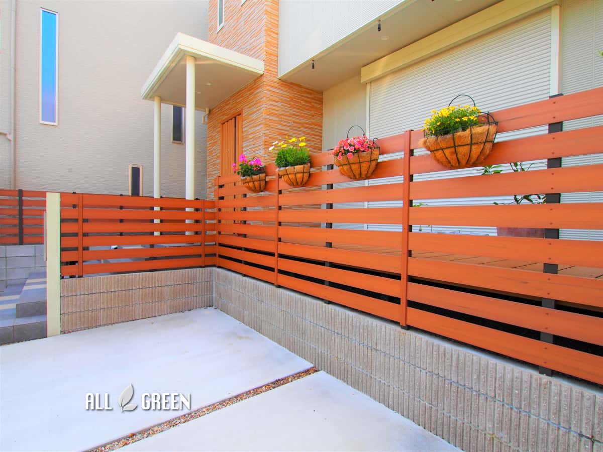 階段横のフェンスは宅配BOXの付いた門塀と同じ高さになるよう設置しました。