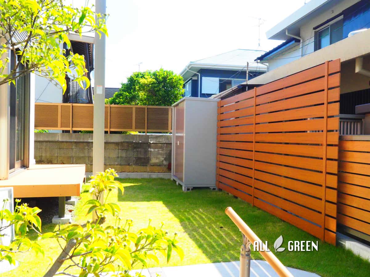そしてもう一方のお庭部分は芝・ウッドデッキ・木調フェンスなど自然を感じるものを使いナチュラルに仕上げました。