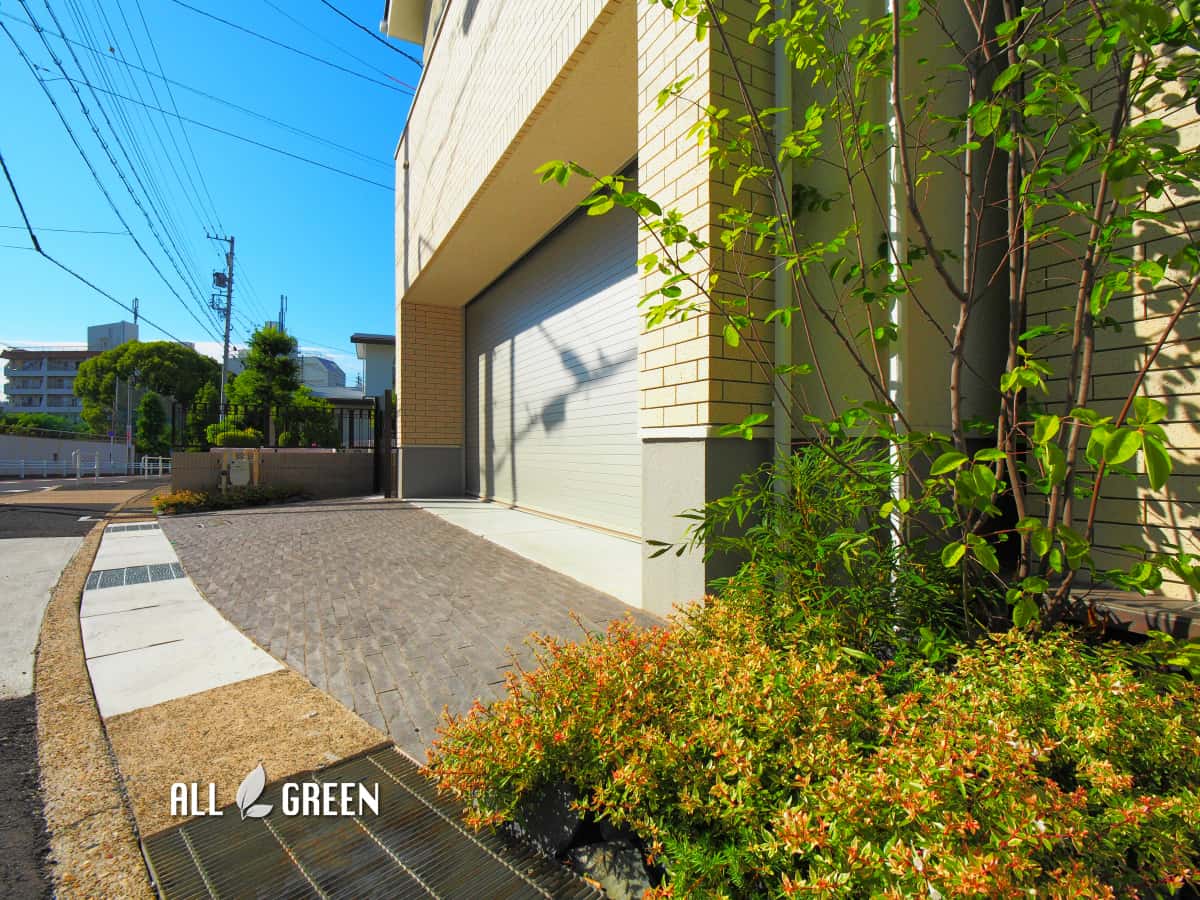 | 工事内容 | 名古屋市瑞穂区 N様邸 新築外構工事 アプローチ屋根工事・インターロッキング工事・階段工事・植栽工事・照明工事 |