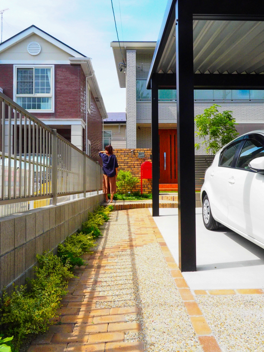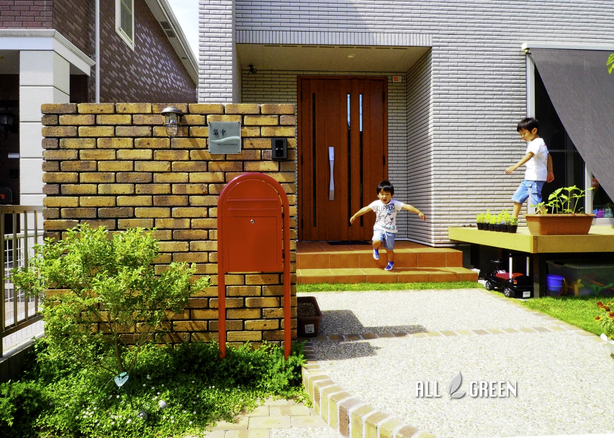 子供の笑顔あふれるレンガ門塀の名古屋市西区のナチュラル新築外構工事