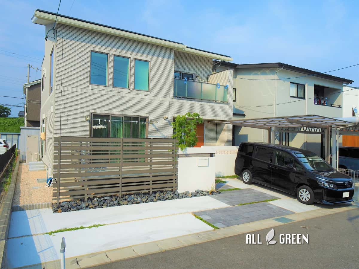 | 工事内容 | 四日市市 H様邸 新築外構工事 門塀工事・目隠し塀工事・土間コンクリート工事・アプローチ工事・カーポート工事・目隠しフェンス工事・ウッドデッキ工事・植栽工事・照明工事 |