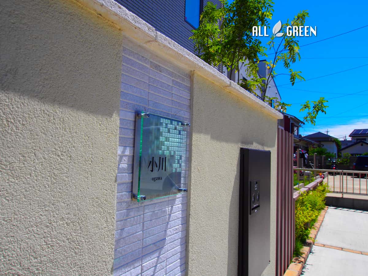 | 使用商品 | 駐車場:土間コンクリート刷毛引き仕上 単粒砕石敷き レンガ:UNISON ミルドブリック(ベーシュ)平積 アプローチ:平板 TOYO ドゥステップ 立上り UNISON ミルドブリック(ベージュ)平積み 乱形石貼り B−life.s ラテンストーン(シャインイエロー) スポットライト:LIXIL SSP−G2型 2個 グランドライト:LIXIL GND−G2型 門柱:普通コンクリートブロック100/120積 塗装仕上 笠木:UNISON エミリーボーダー(オフホワイト) スクリーンブロック:Onlyone トリム(ホワイト) 石張り:TOYO スクエアストーン スレンダー48(アースホワイト) ポスト:UNISON ルージュムント(ウォールナット) 宅配BOX:Panasonic コンボミドルFR(ブラウン) 角柱:LIXIL Dパーツ70角(グレイッシュオーク) フレーム:LIXIL アレンジフレーム 35×80(グレイッシュオーク) ステップ:普通コンクリートブロック100積 塗装仕上 平板:TOYO ドゥステップ 400角 ハナミズキ(白) H2.5 寄せ植え 割栗石(チャート) ハイビャクシン シマトネリコ シルバープリペット 芝貼り |