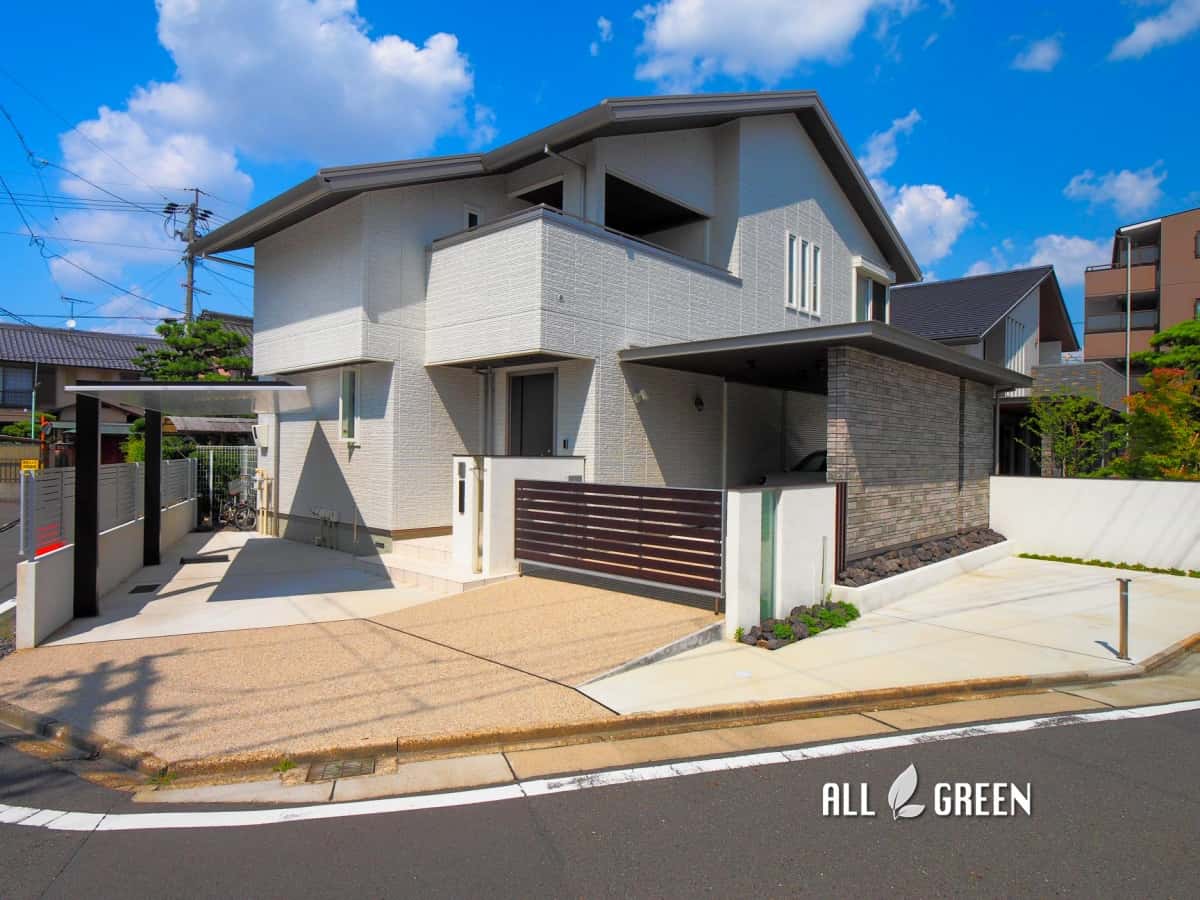 | 外構工事概要 | 名古屋市中川区O様邸新築外構工事 駐車場、カーポート、オーバードア、アプローチ、門塀、ライティング |