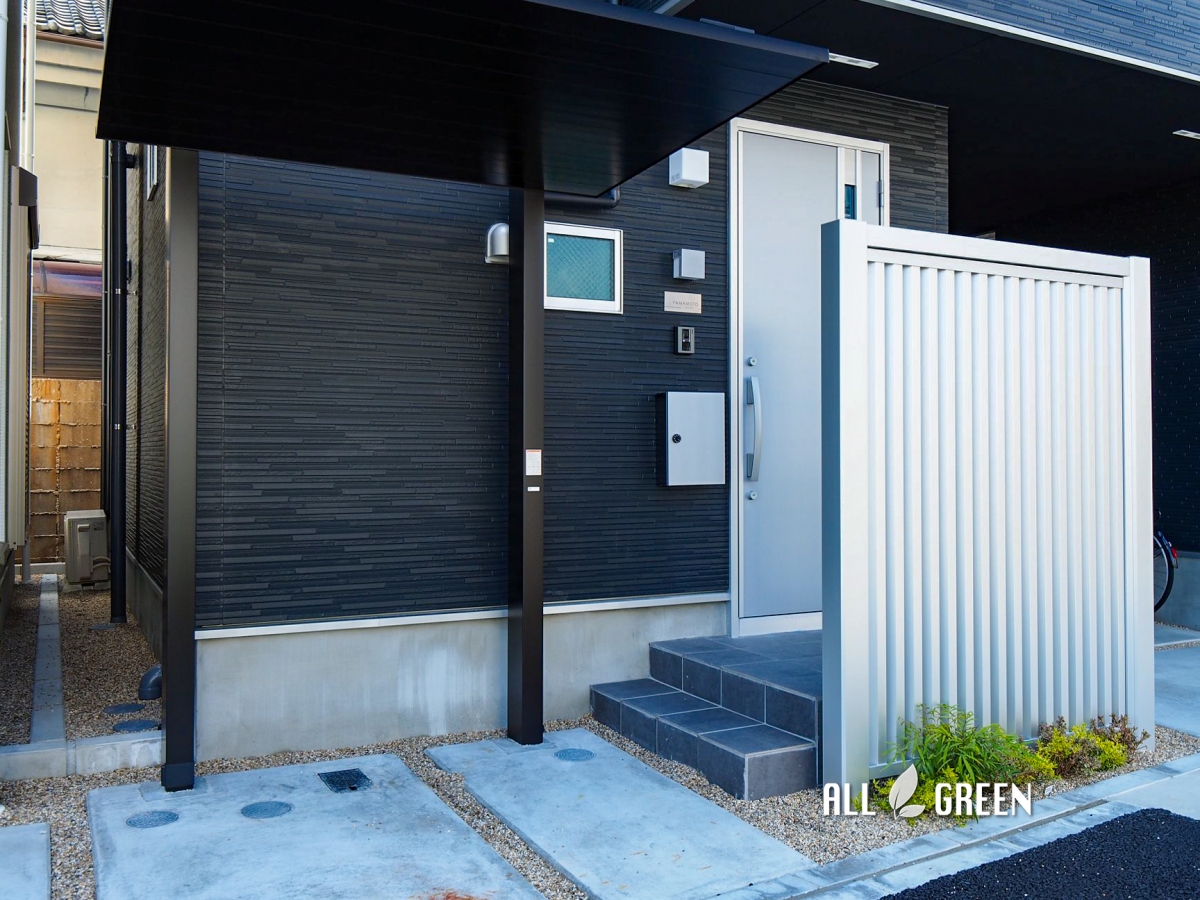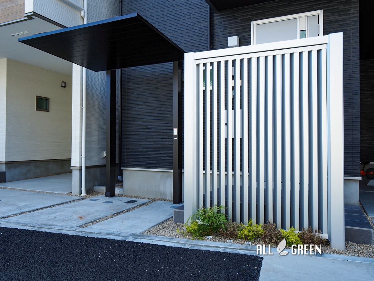玄関扉を開けるとすぐ歩道なのでアイストップしたいと目隠しフェンスをご希望されたお施主様。