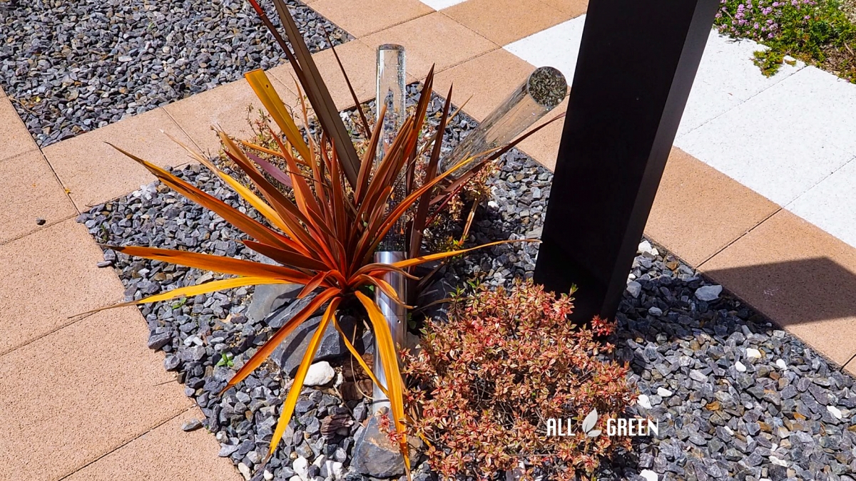またご来店時に気になっていたEXALIVEの照明、一条の光も門柱下の植栽に寄り添うような形で忍び込ませています。