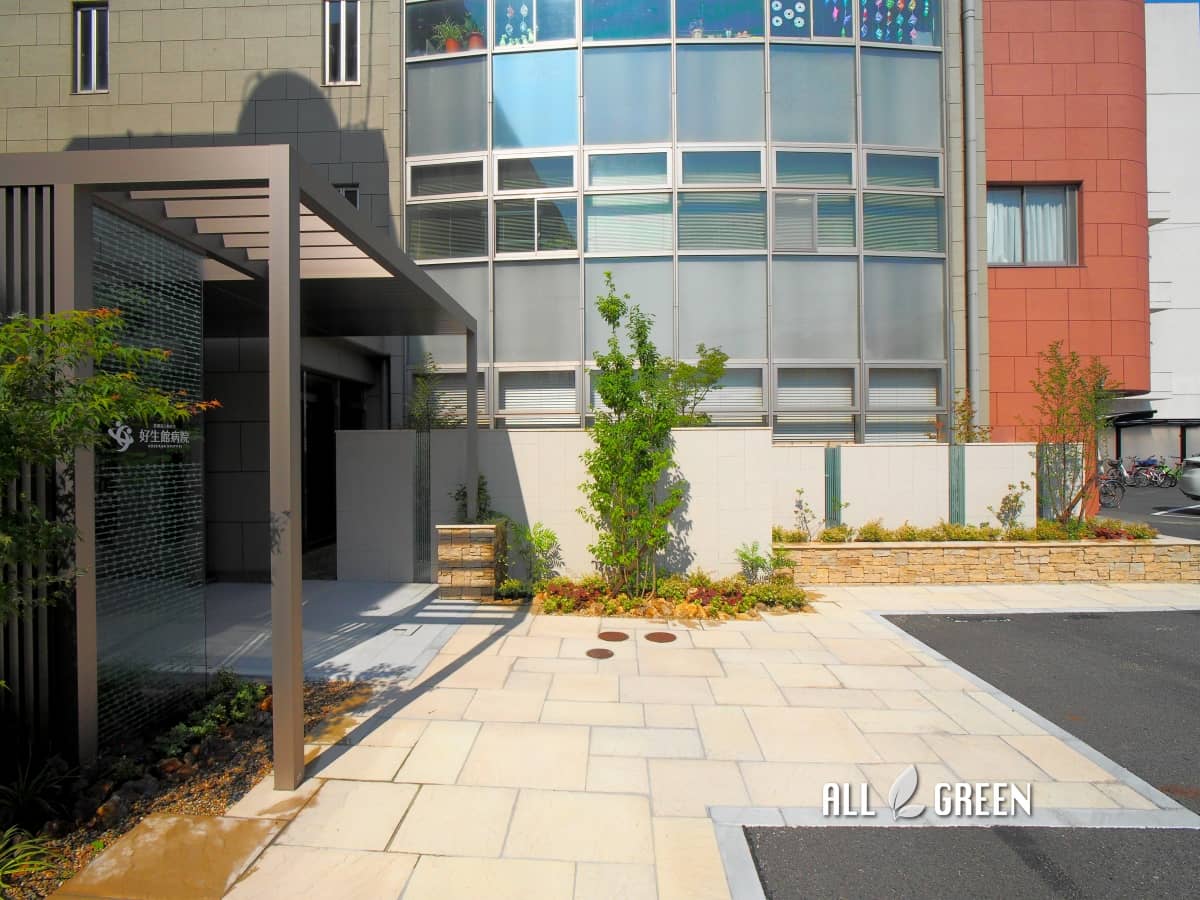 あま市の大型病院リフォームは外構エクステリアが敷地全体に与える印象を大きく変えるという事の証明になっています。当然、動線などの安全性、使い勝っても設計の大事な要素となります。