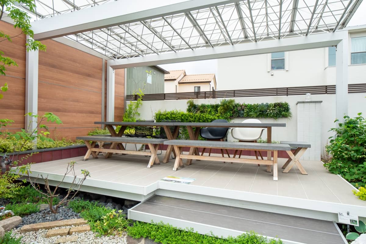 2020年春オールグリーン清須店に設置された大型ウッドデッキサンプルをご紹介。見て触って比較検討、後悔のないウッドデッキライフを!