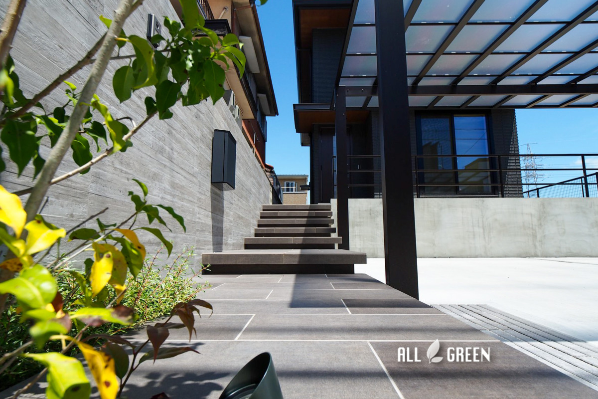 高級感とクール、色の統一感で造り出す名古屋市千種区のシンプルモダン外構
