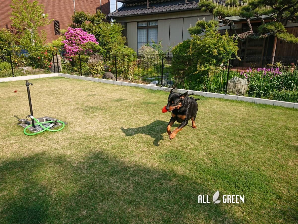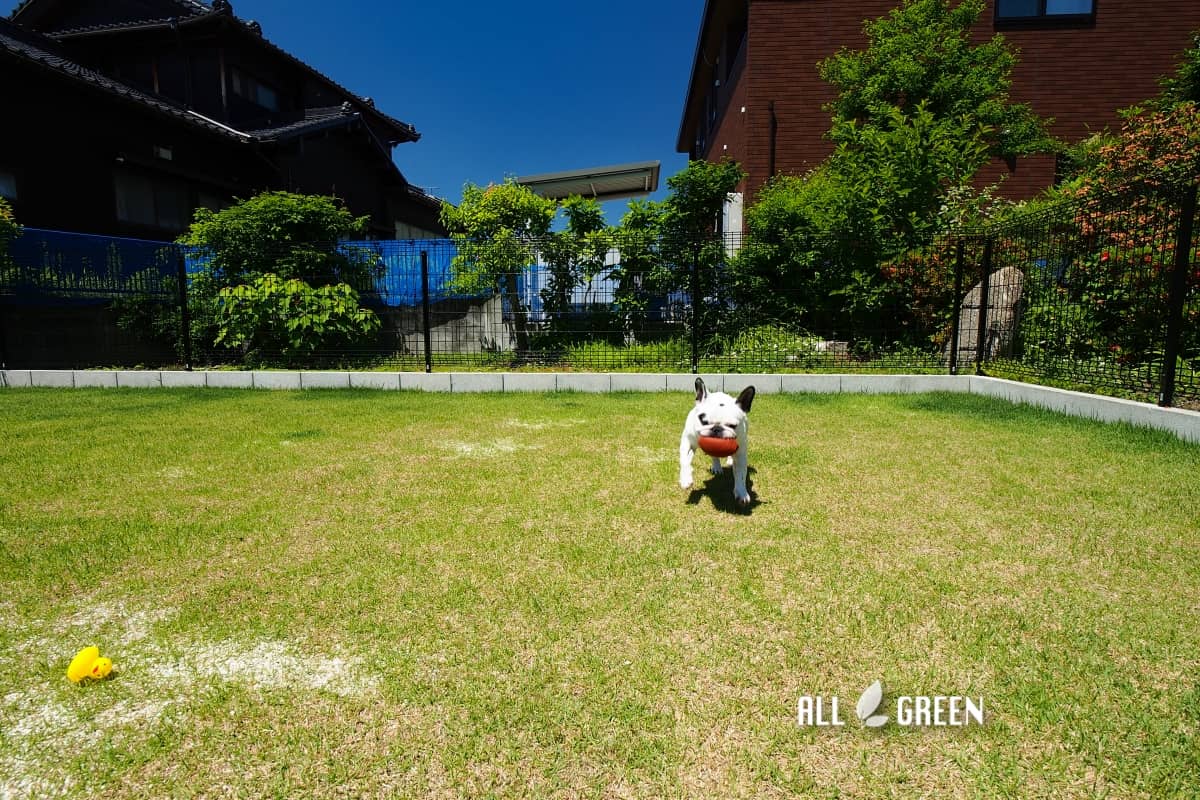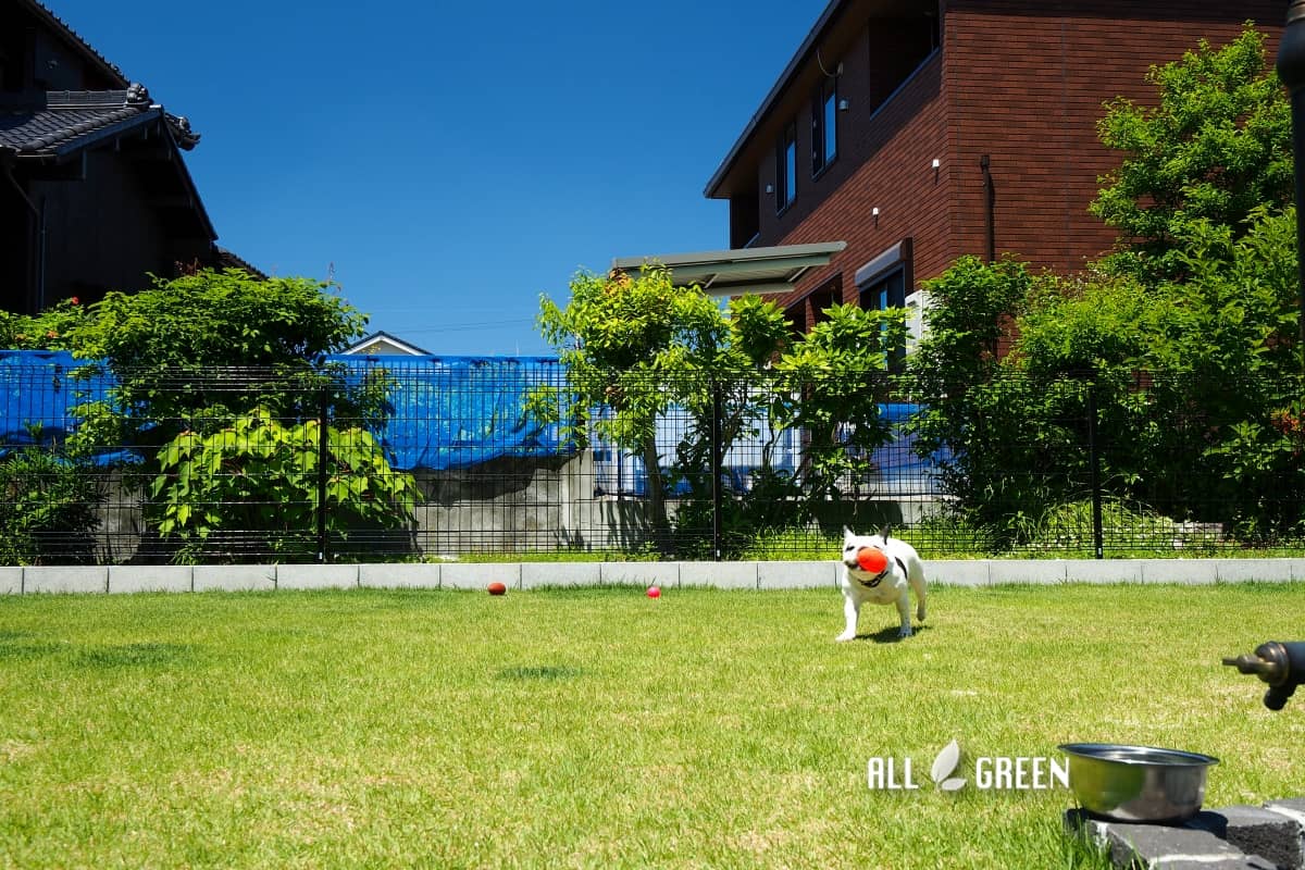 お手入れが大変なのに天然芝?と思う方もみえるかもしれませんが、人工芝はお手入れが楽なかわりに少し熱を持ちやすいというデメリットがあるのでワンちゃんを走らすには天然芝のが優しいねとお施主様の心遣いで天然芝になりました。