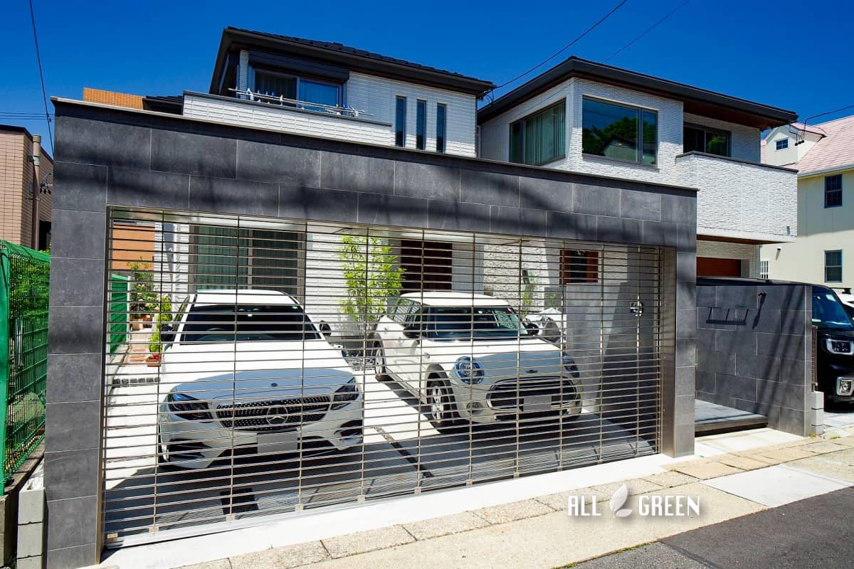 シャッターゲートは道路と敷地の間をシャッターでしっかり仕切ることでプライベートを守ることができ、フェンスで囲うクローズ外構とはまた違った高さのあるクローズ外構に仕上がります。