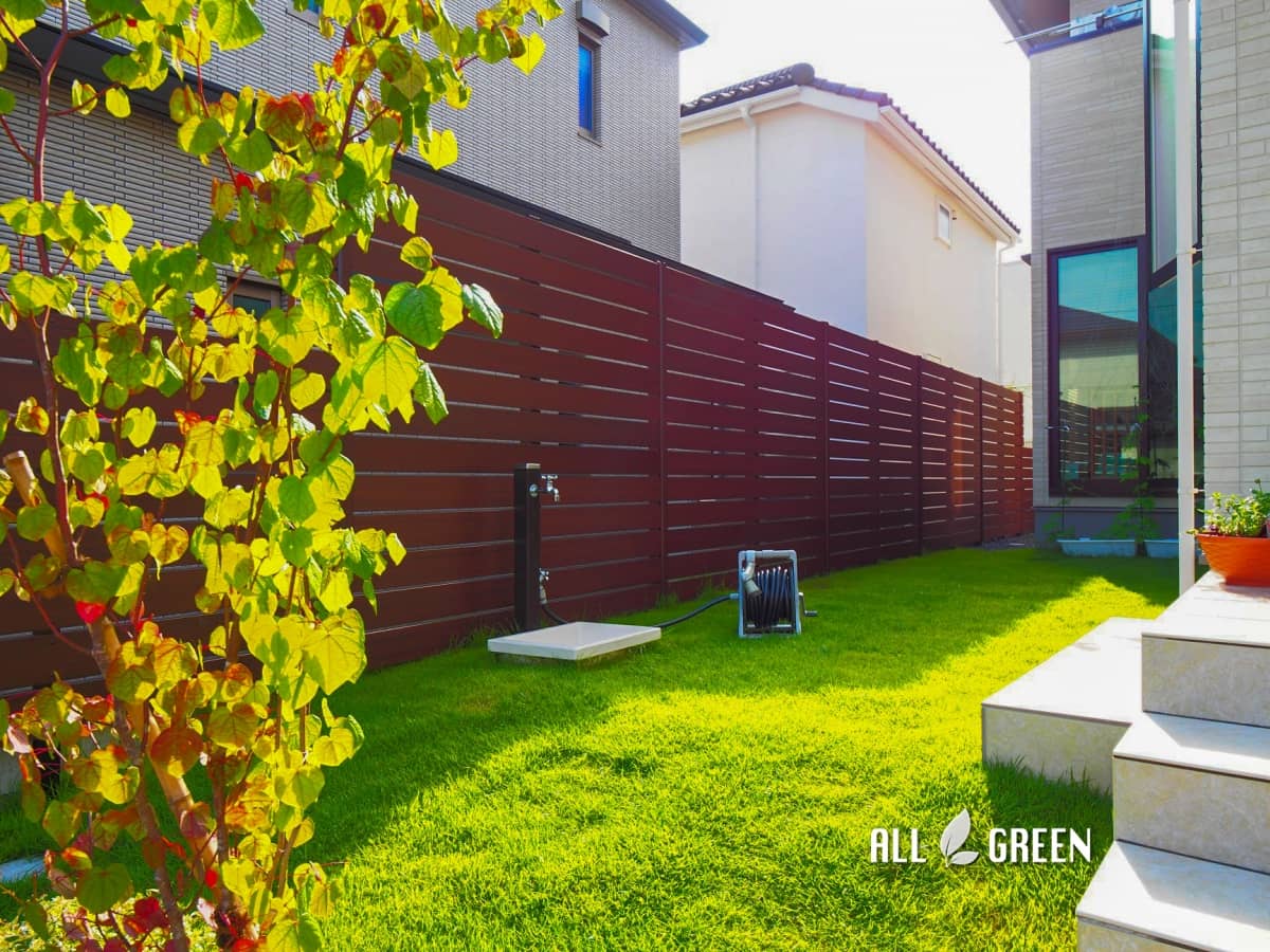 | エクステリア商品 | アプローチ:洗い出しコンクリート 目地:植栽目地 W70 フェンス:B-LIfe,s Bウッドフェンス 隙間10mm 8枚貼(1ヶ所)13枚貼(1ヶ所)(ノーブルブラウン/柱:オータムブラウン) 階段 蹴上:普通CB積+四国化成パレットHG仕上(154) 踏面:UNISON バレリア 350角 ※30mm出し(アルテベージュ) 手摺:LIXIL アーキレール H800 角柱 横桟1本(ブラック) 門塀:普通120・100CB積(+3682) 仕上:四国化成 パレットHG(154) 笠木:UNISON クリスボーダー(マットブラウン) タイル:TOYO クロードモザイク(ベージュ) ポスト:UNISON ヴィコBI(ウォールナット) 表札:美濃クラフト BAS-11 立水栓:UNISON スプレ蛇口2個(チョコブラウン/シルバー) パン:Onlyone トレビフィット 照明:LIXIL G-2 スパイクスポット 12V(オータムブラウン) ガーデンポールライト H400 12V(オータムブラウン) |
