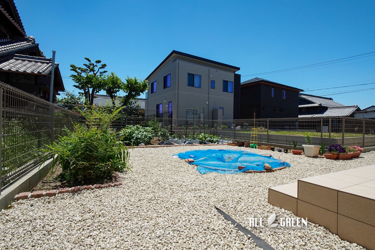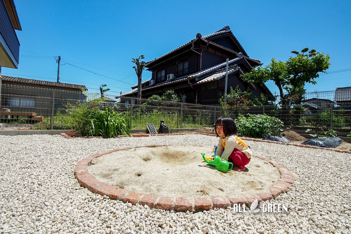 | 外構工事概要 | 北名古屋市Y様邸新築外構 砂場、花壇、物置、砂利 |