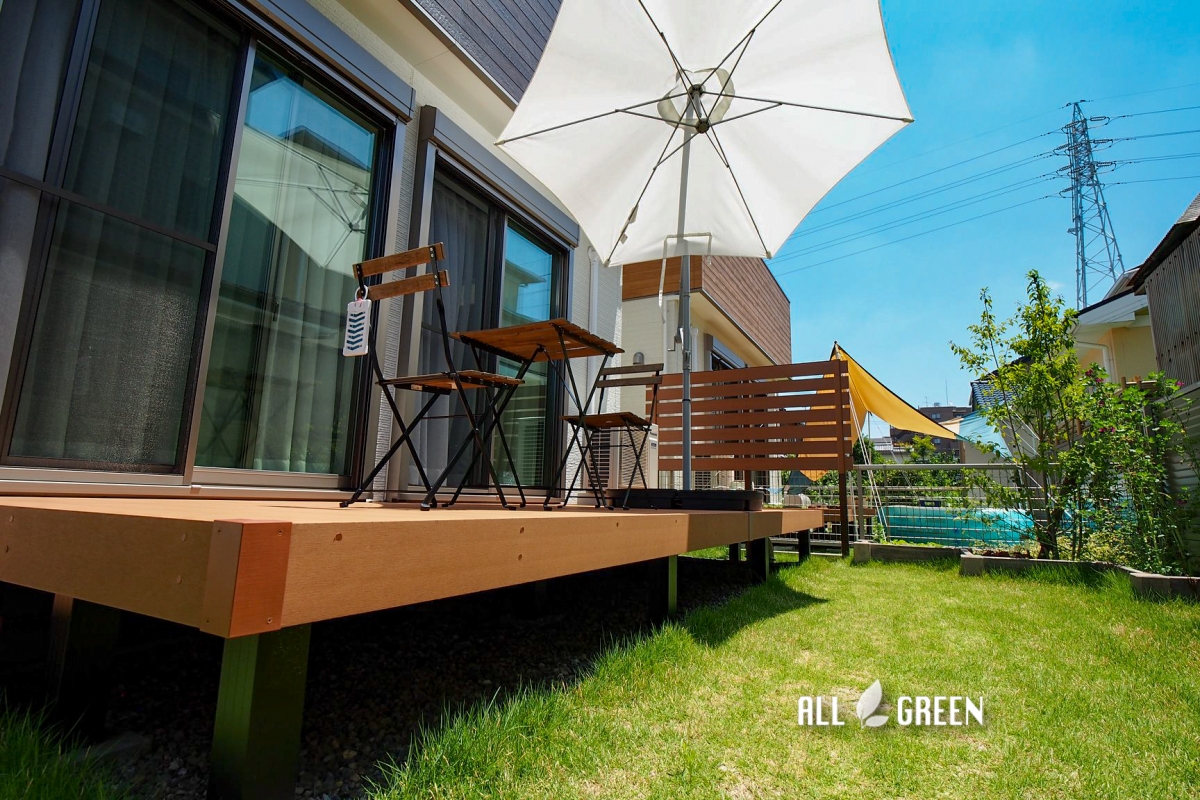 リフォームでウッドデッキでの生活が視線の気にしない緑あふれる憩いの場に。