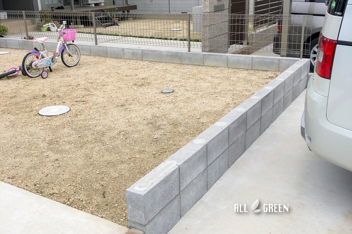 家の建築時に必要最低限の外構はやったけど生活していくと結構気になるところがでてきて‥というお話で、 ” カーポート サイクルストッパー 目隠しフェンス 人工芝 ” この4点の工事をご検討。