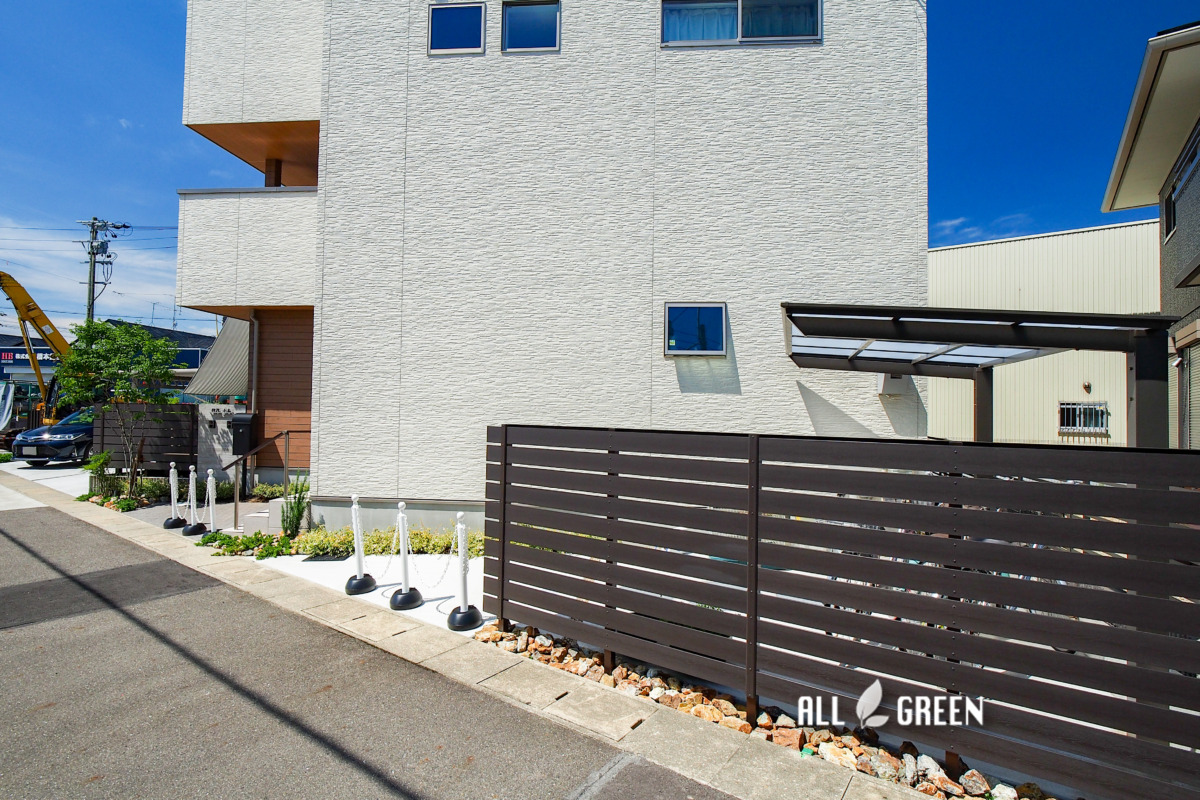 全てのスペースを最大限に使い切り、見た目と機能性を兼ね備えた外構となりました。