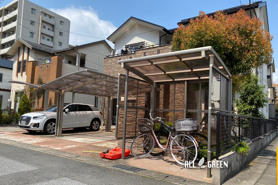 離れた位置に別々で設置されているカーポートとサイクルポートを同じ屋根の下で一緒に駐車させたいとご相談くださったお施主様。