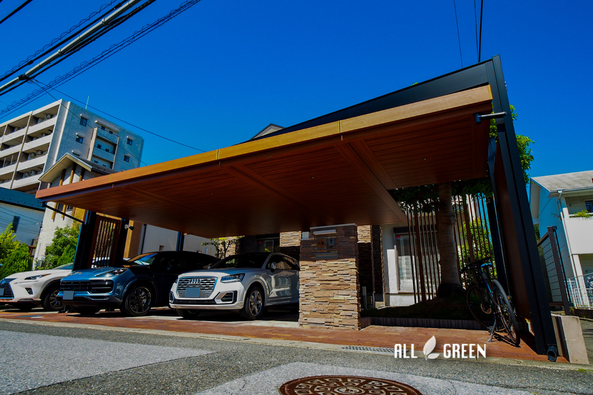 津島市の駐車スペースと駐輪スペースに大きな1枚の屋根を。敷地対応力のあるカーポートをメインに大型リフォーム