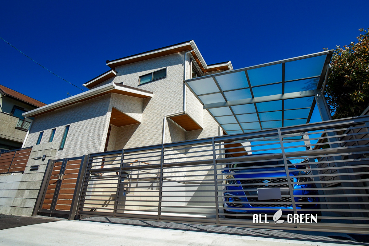 オーバードアと同系色にしたカーポートはYKKのエフルージュグラン。