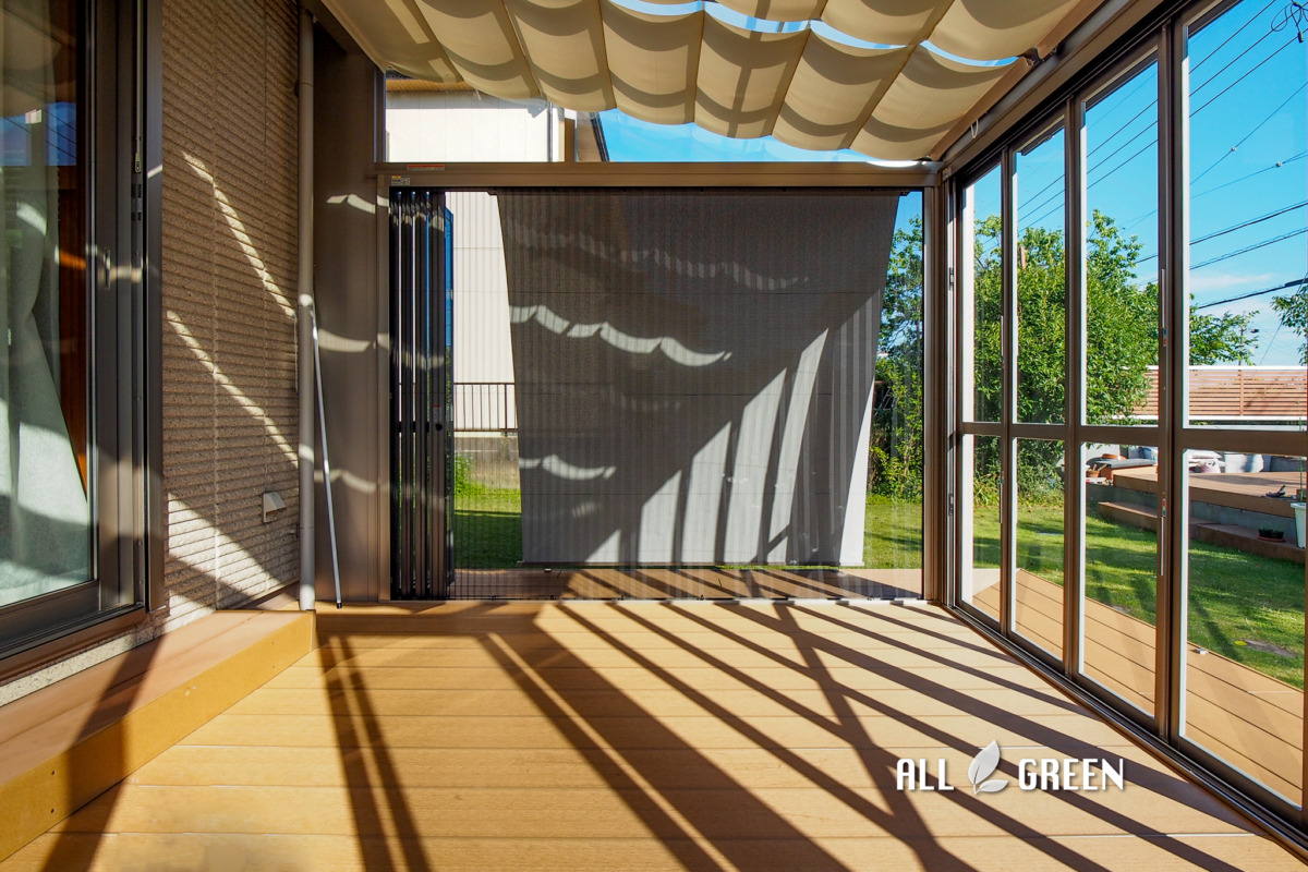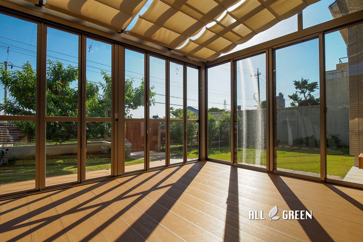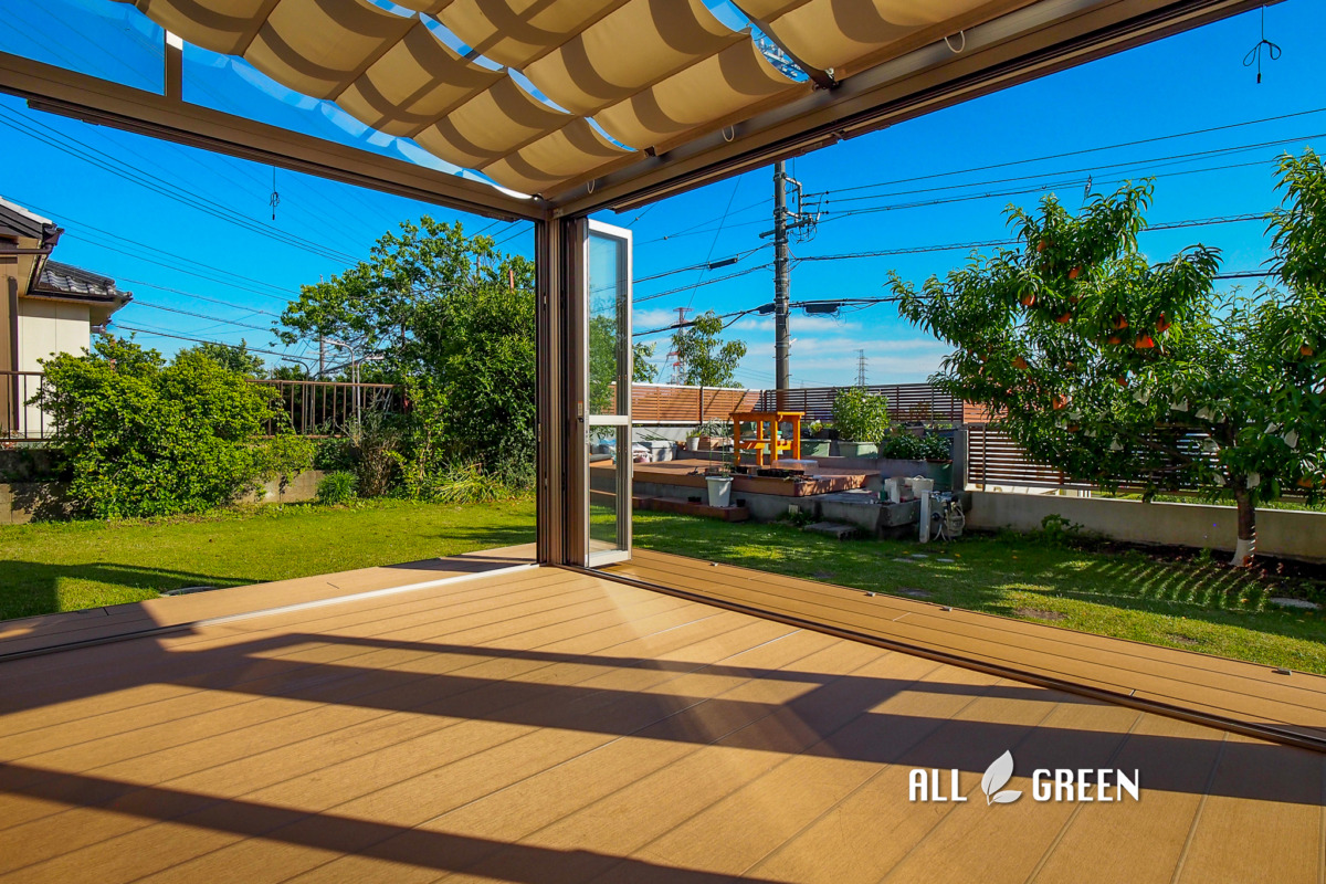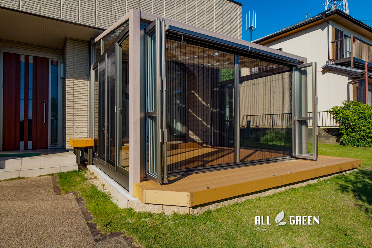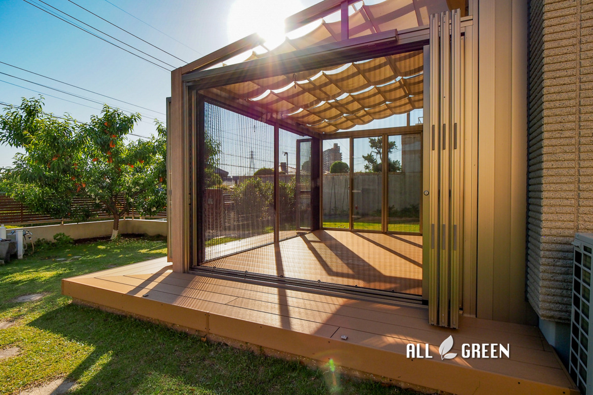 既設のデッキを撤去し施工したガーデンルームGFは開口部やカラー、床材をライフスタイルや好みに合わせ選ぶことができます。