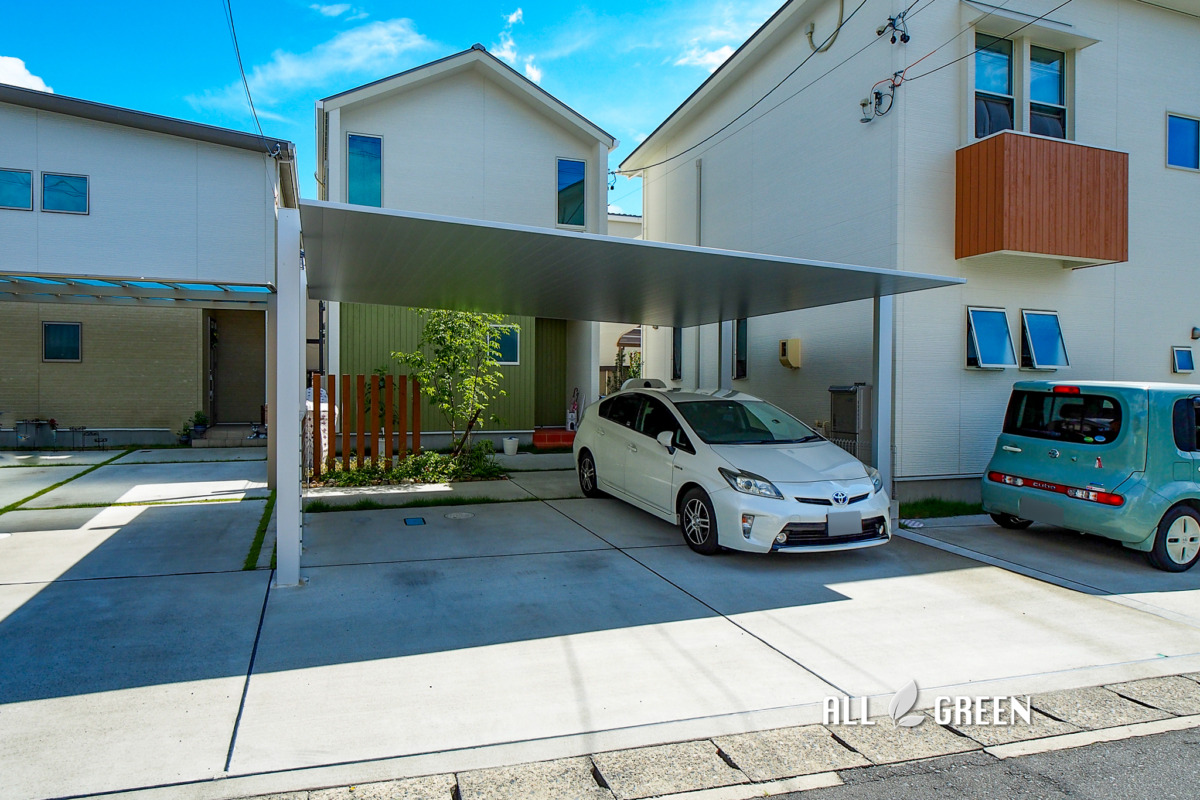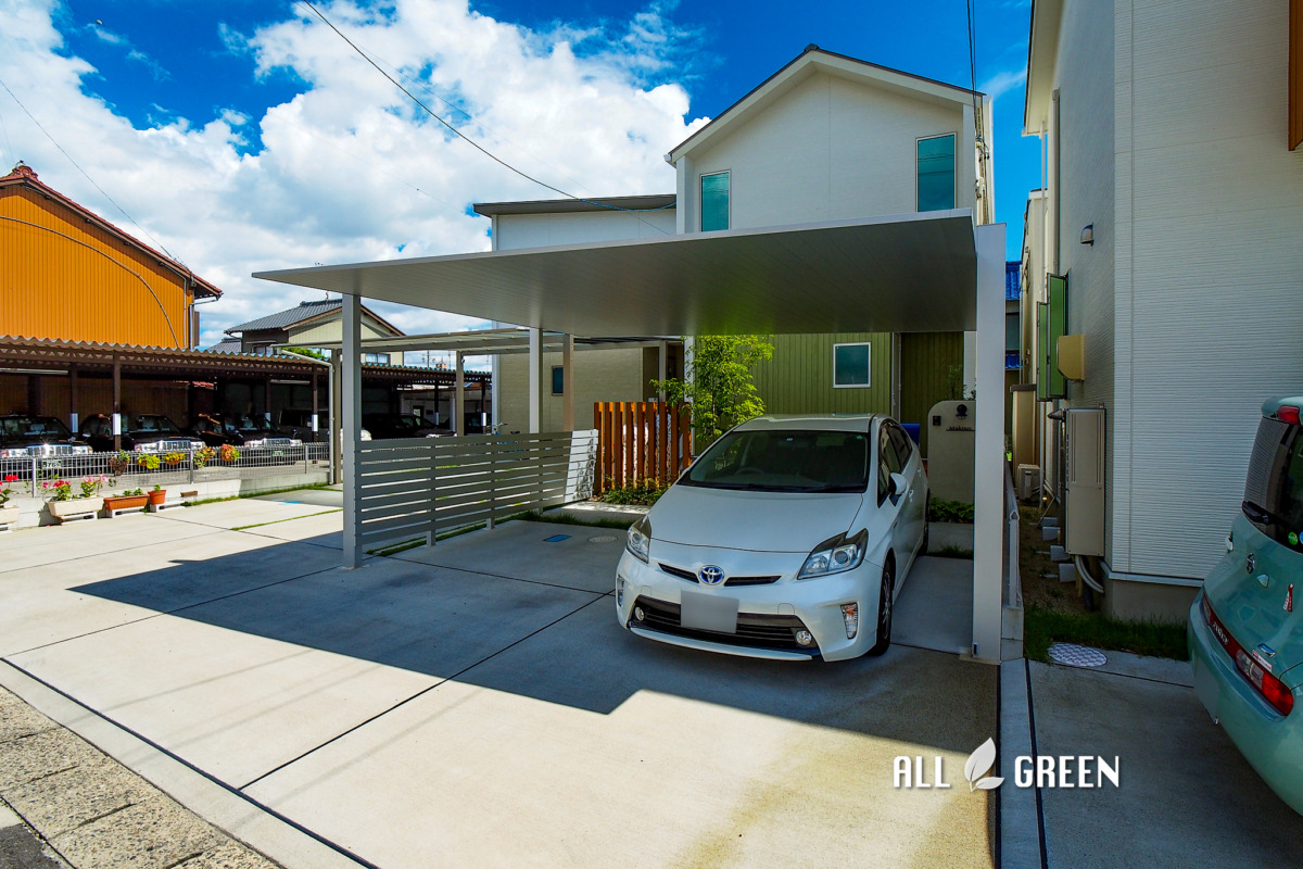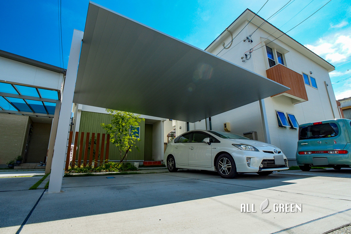 玄関の屋根は将来的にカーポートも考えているとおっしゃっていたのでカーポート設置をご提案。