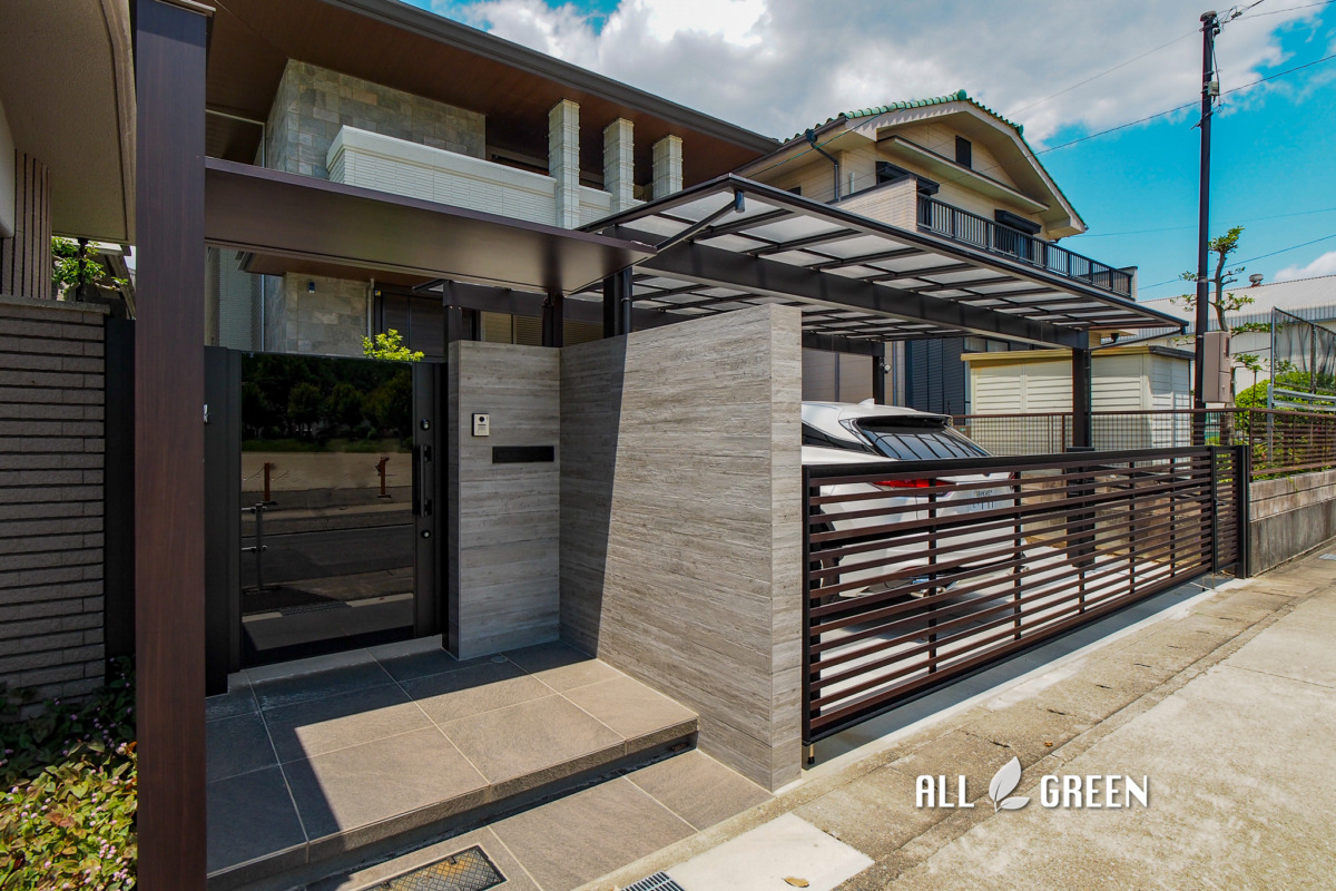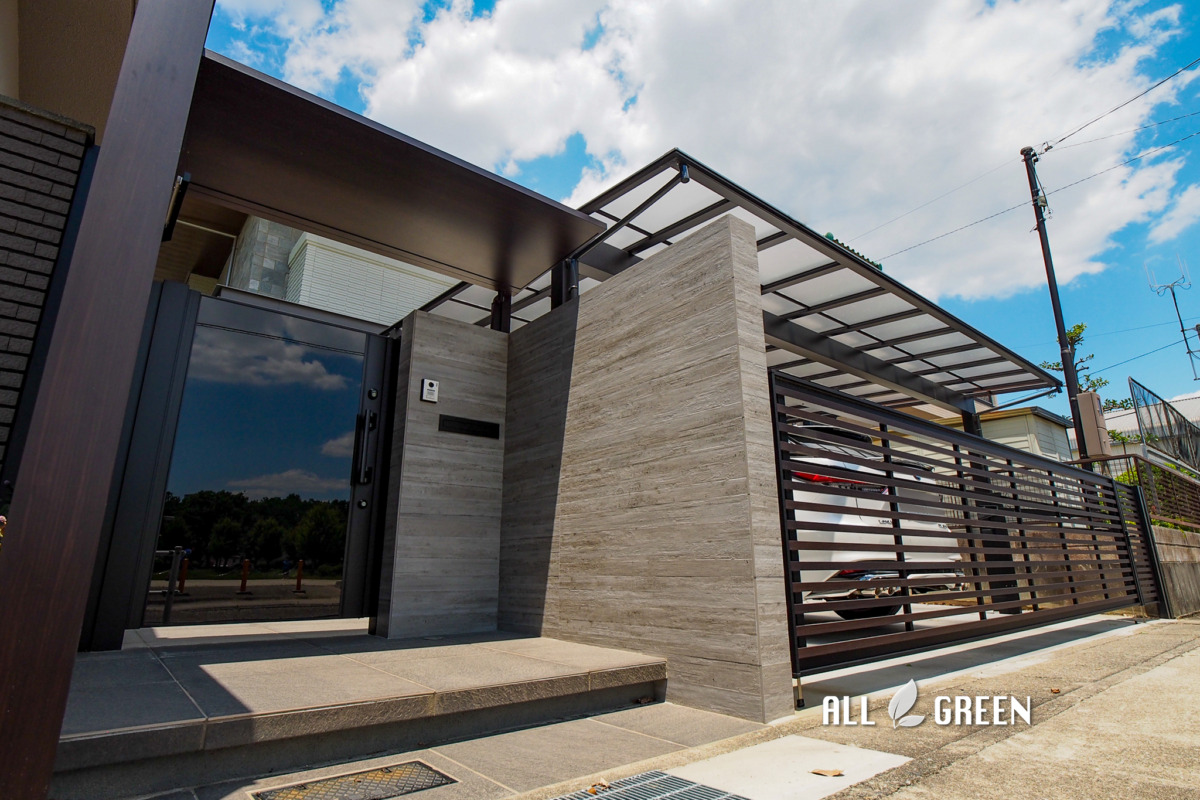 | 外構工事概要 | 尾張旭市O様邸新築外構 カーポート、オーバードア、門扉、アプローチ、ルーフ |