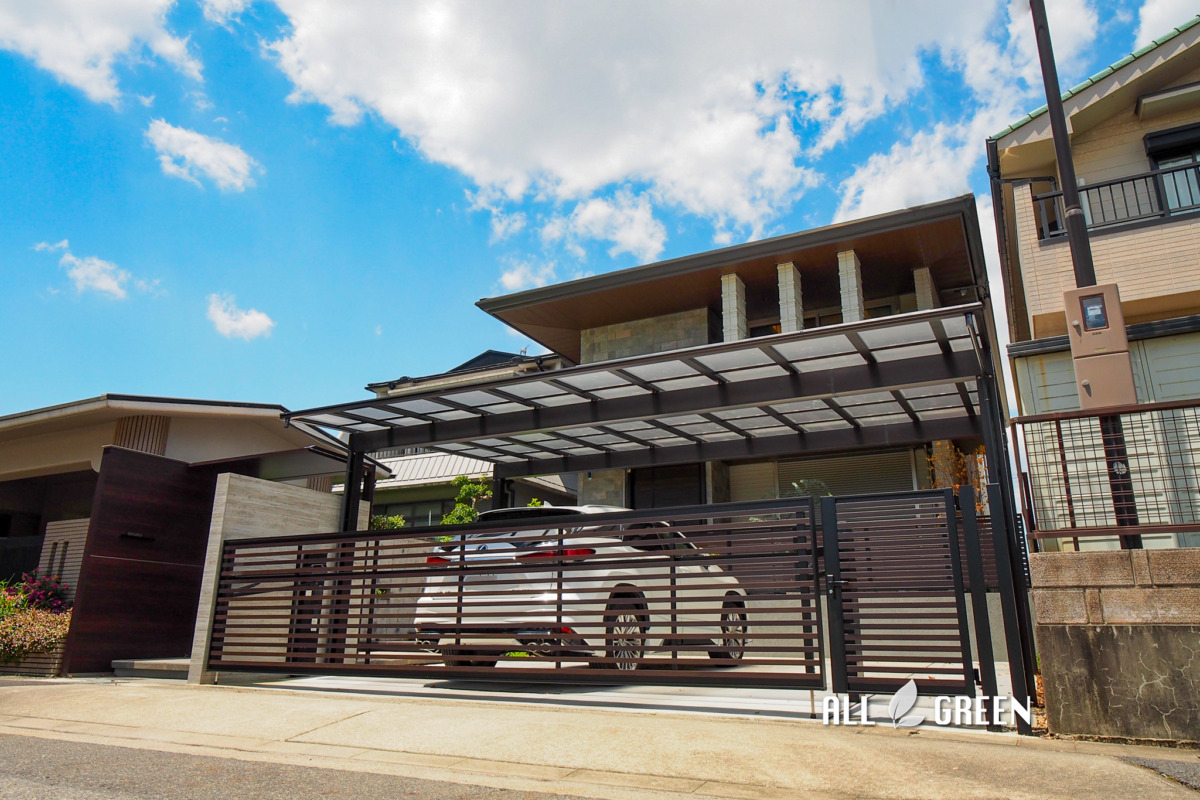 オーバーゲートの上部にはカーポートも設置し防犯性だけではなく、上からのダメージにも対応でき風雨や紫外線から車を守ります。