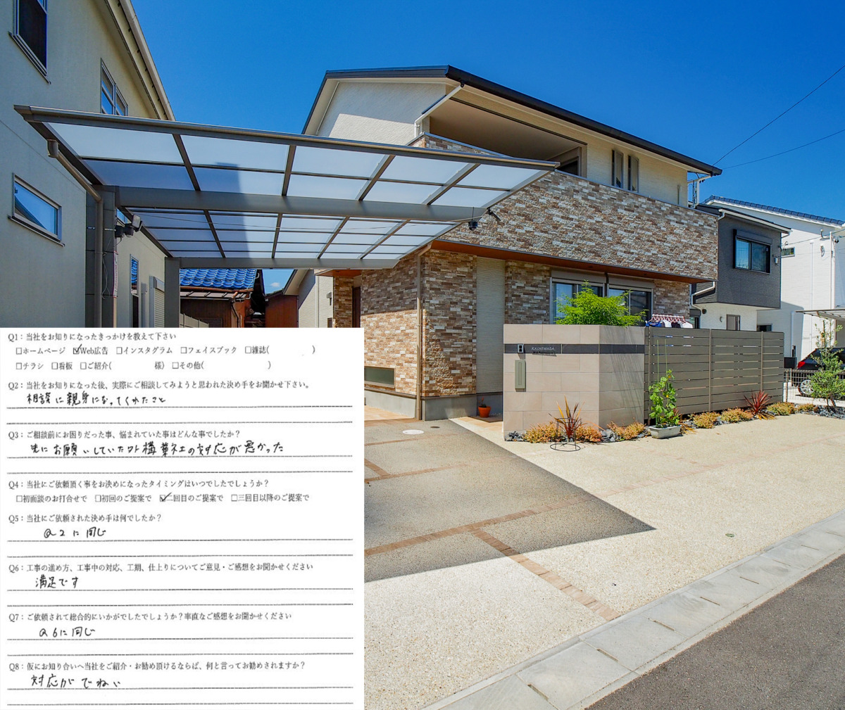 • 先にお願いしていた外構業者の対応が悪くて悩んでいました。対応が丁寧で相談に対して親身になってくれたオールグリーンで満足しています!一宮市/K邸
