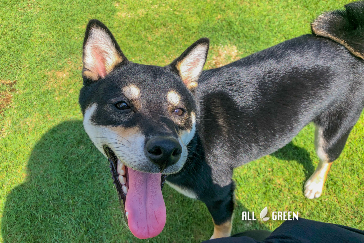 現状、天然芝が敷いてあるものの草丈がまばらになってしまっている状態で、そこに植栽も数本植わっていることから、ワンちゃんを満足に走らせてあげられないと判断し相談に至ったそうです。