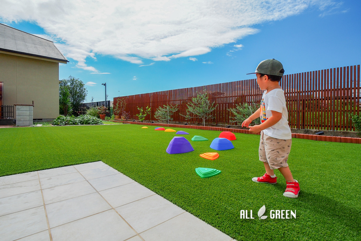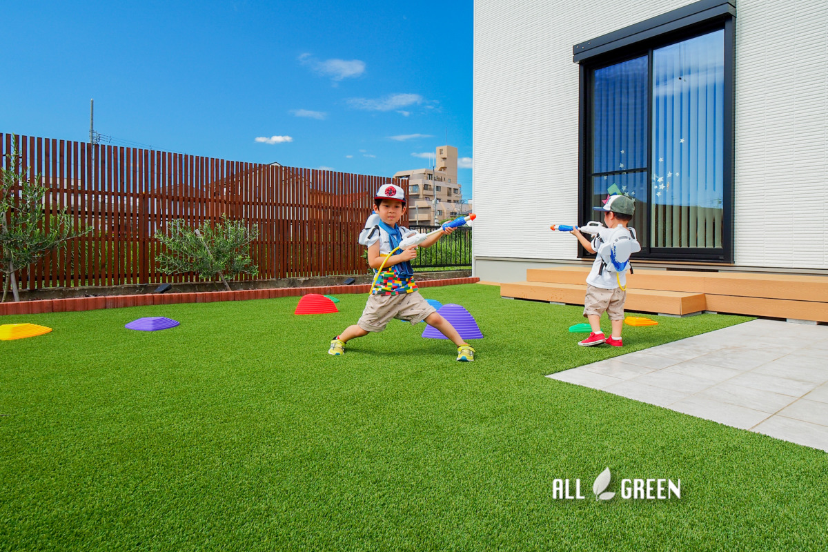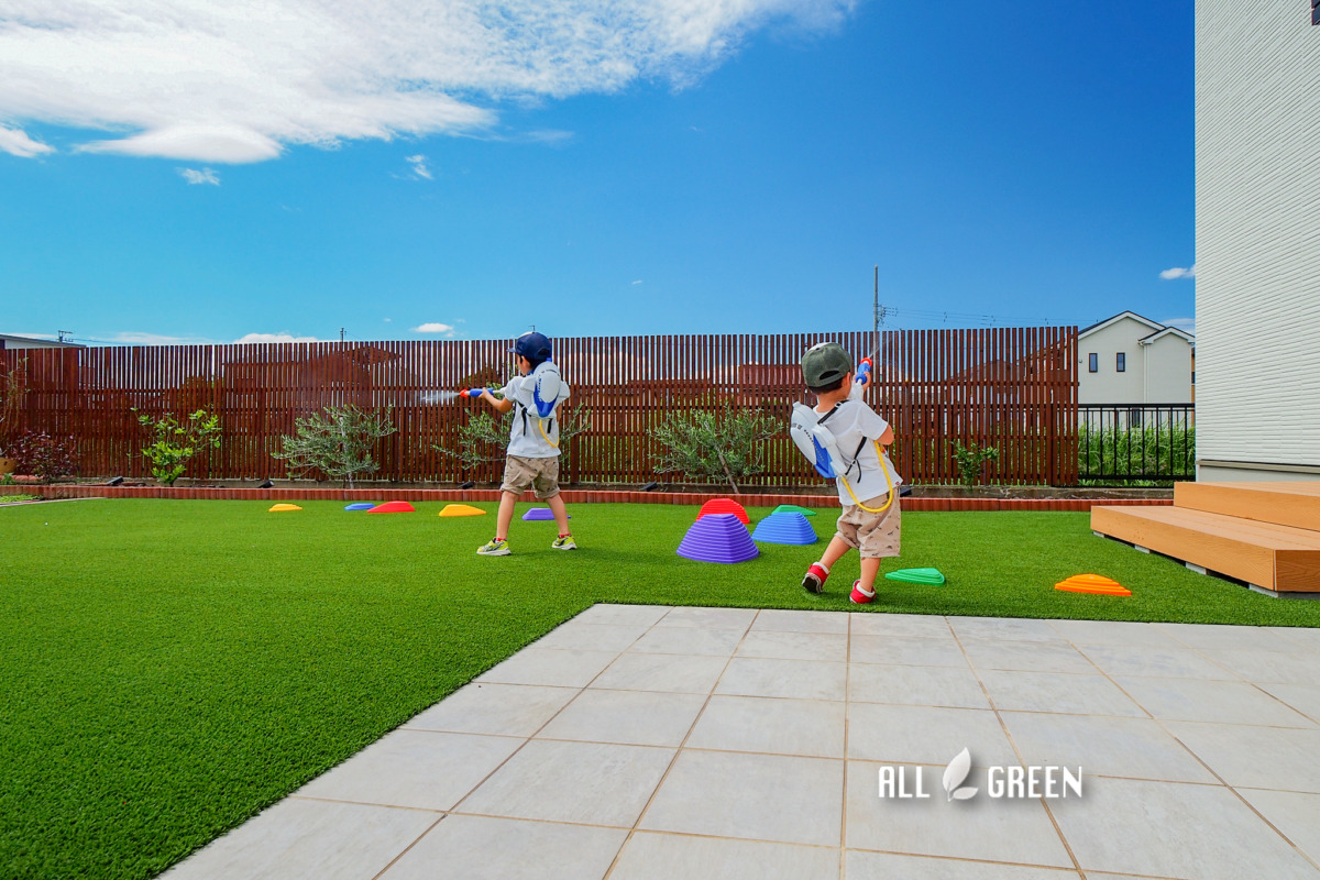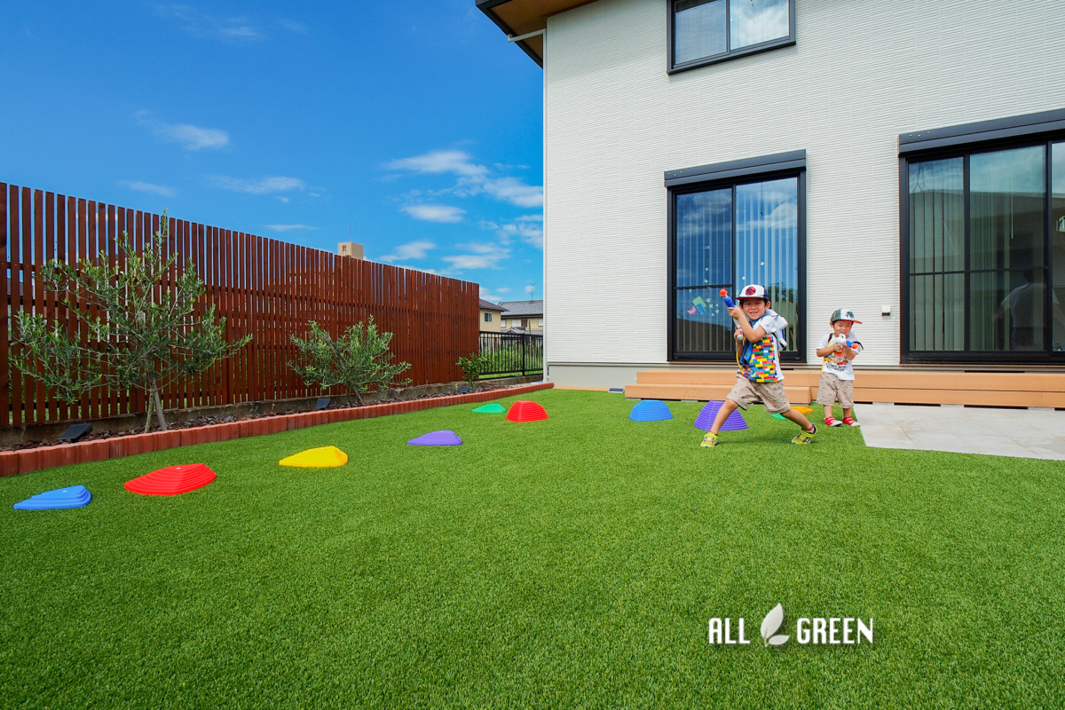 広々としたお庭にはプロの人工芝屋さんを手配し、広い面積人工芝を施工していただきました。