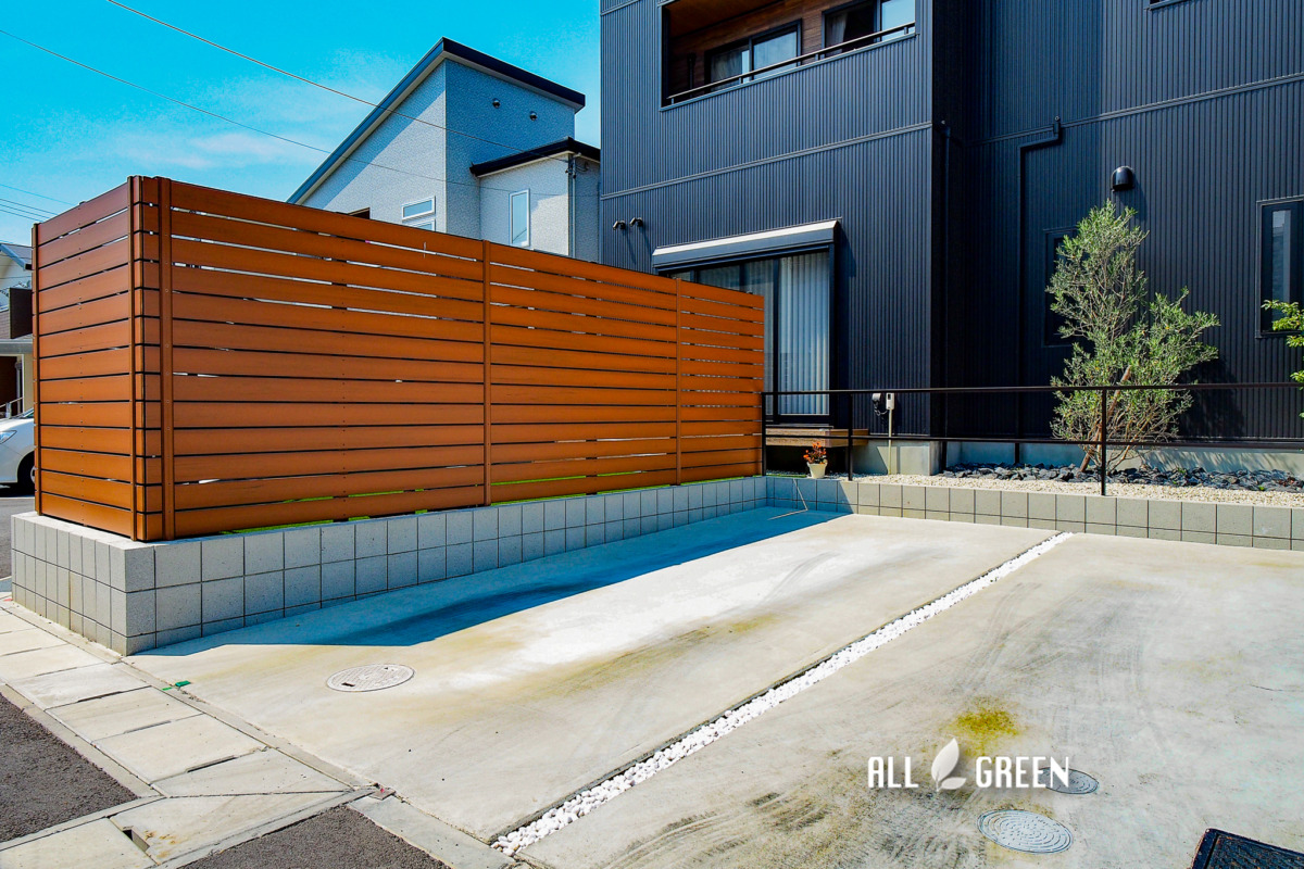 メッシュフェンスじゃ遮れなかった外部からの視線を木調のフェンスでガード!家族でまったり過ごすがテーマの清須市のリフォーム外構
