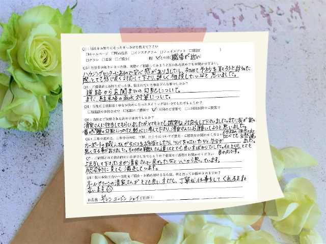予約を取りに店舗へ訪れた際の対応がとても感じが良く、ここで詳しくお話を聞きたいと思い相談に至りました。営業担当の方がとても誠実な対応をして下さる方で良かったです!愛知県東郷町/ギレン様邸