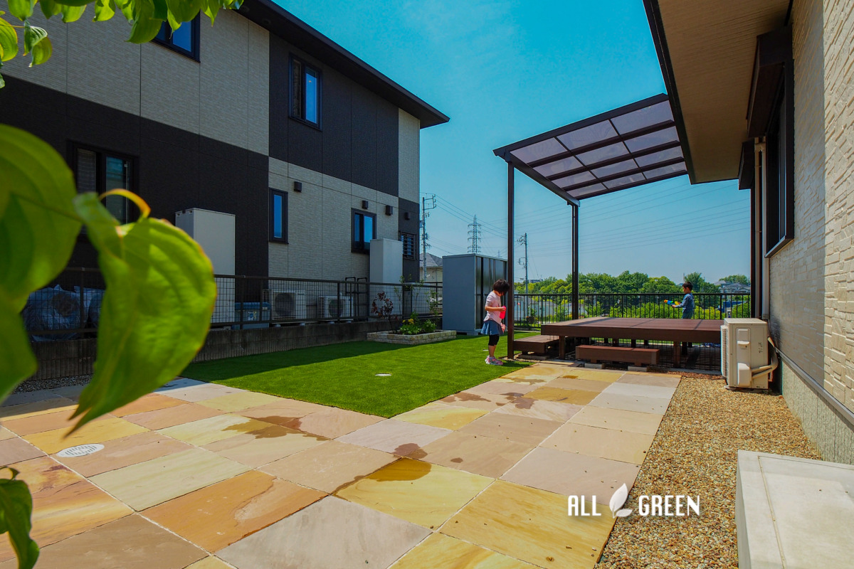 新築時に設置した天然木でできたパーゴラとウッドデッキが経年劣化してしまったこととお庭に敷いている天然芝のお手入れが大変ということから、スッキリとした綺麗なお庭にリフォームしたいというご相談をいただきました。
