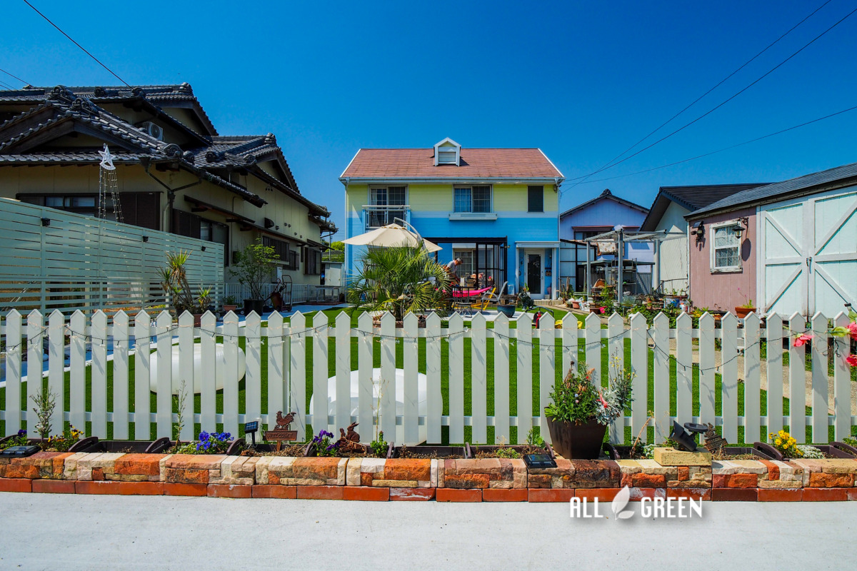 こちらも撤去前に設置されていたフェンスと同じ白色のものを使用し、リフォーム前の景観を崩さず、人工芝や植物が映える空間に。