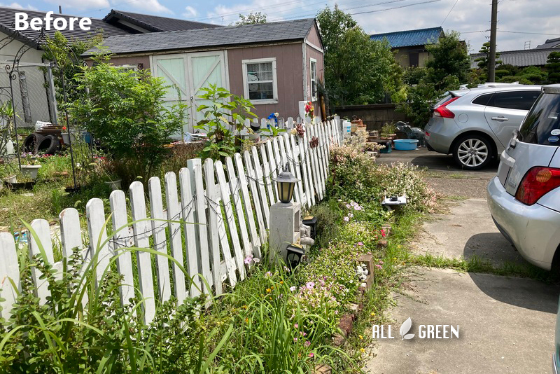 それは駐車スペースの後ろで、お庭の手前に設置されていたフェンスです。