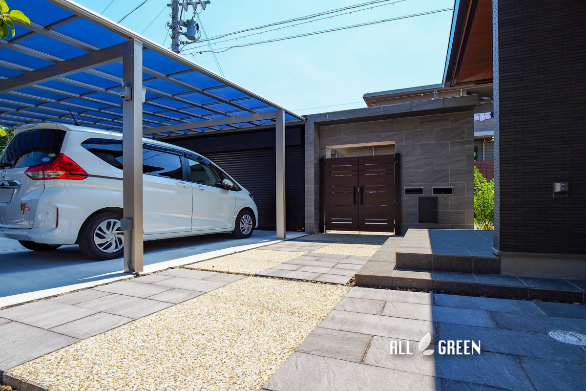 邸宅裏にもご来客が利用できるようカーポートを施工。