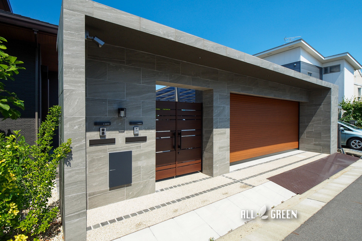 | 外構工事概要 | 名古屋市瑞穂区G様邸新築外構 駐車場、シャッターゲート、ポスト、宅配ボックス、シャッター、カーポート、門扉、アプローチ、塀 |