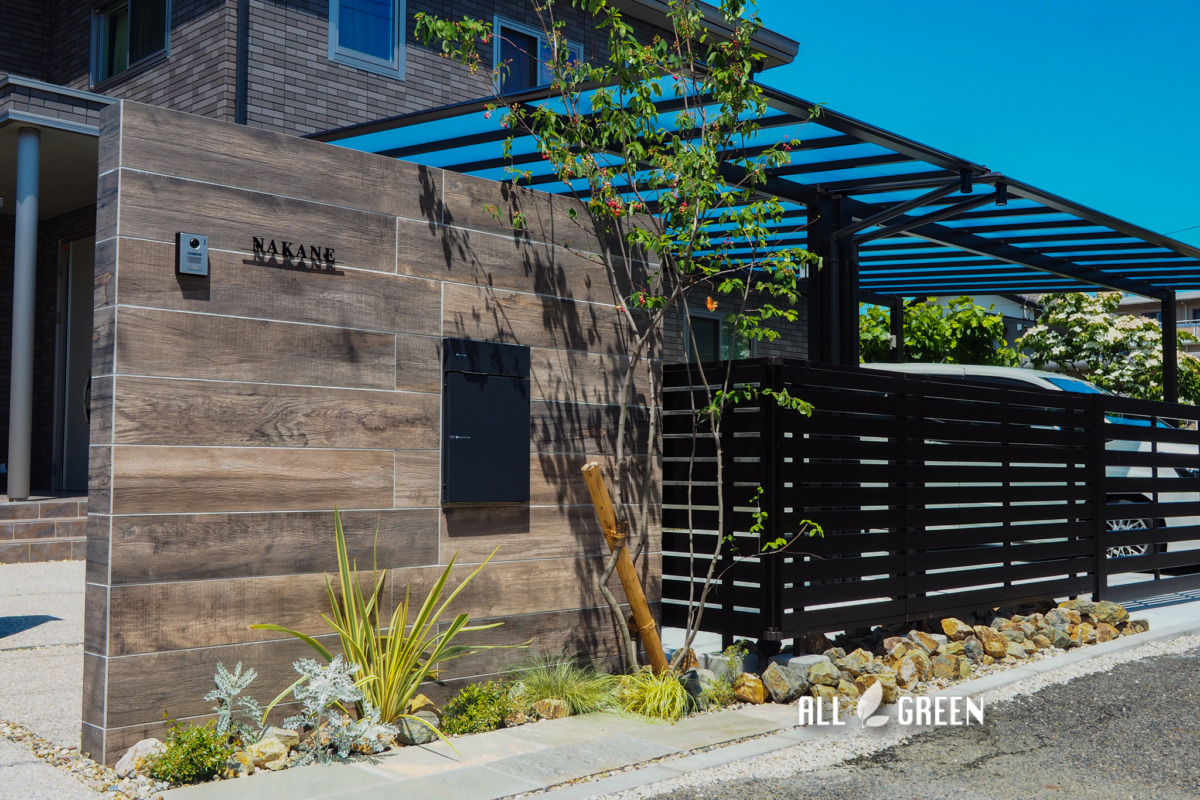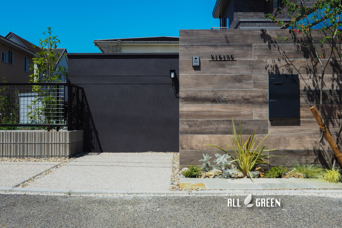 ナチュラルテイストとモダンテイストが融合されたメリハリのある外構デザイン。