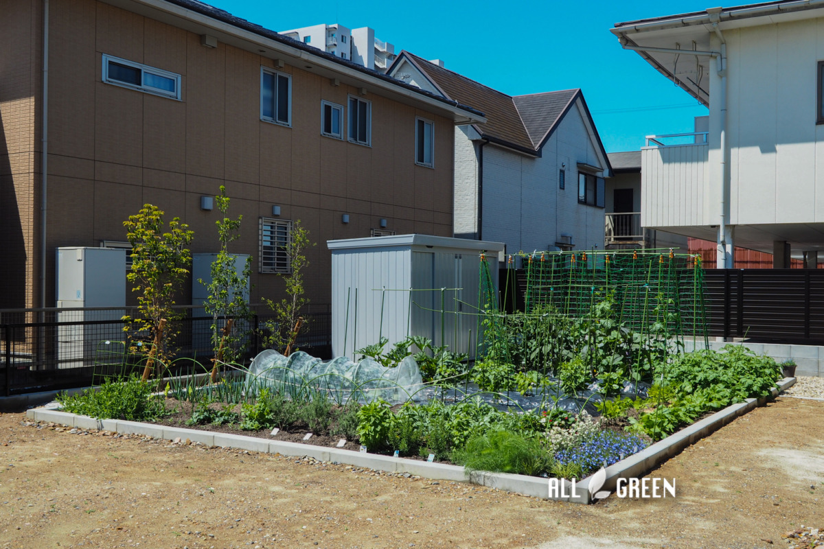 お庭内は、奥様のご趣味とお聞きした家庭菜園を思う存分楽しんでいただけるよう畑スペースを造りました。