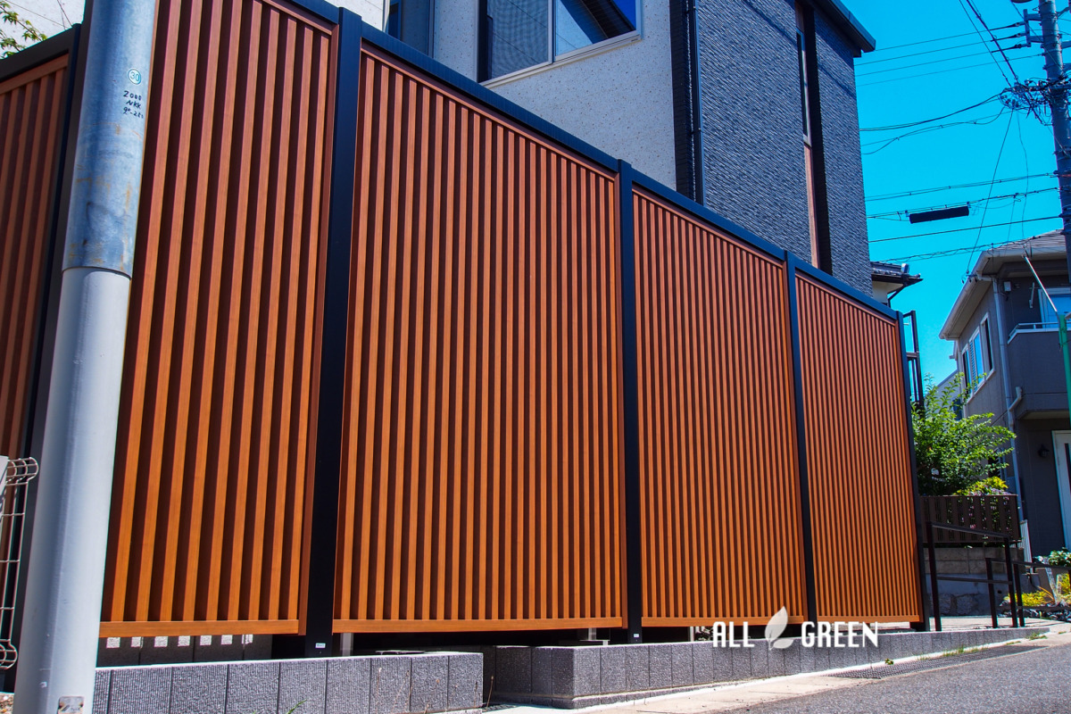 高さのある目隠しスクリーンに圧力を感じさせず、しっかりと馴染んでいるのは木調カラーを使用していることとお洒落な邸宅がマッチしているからなのかなと思いました◎
