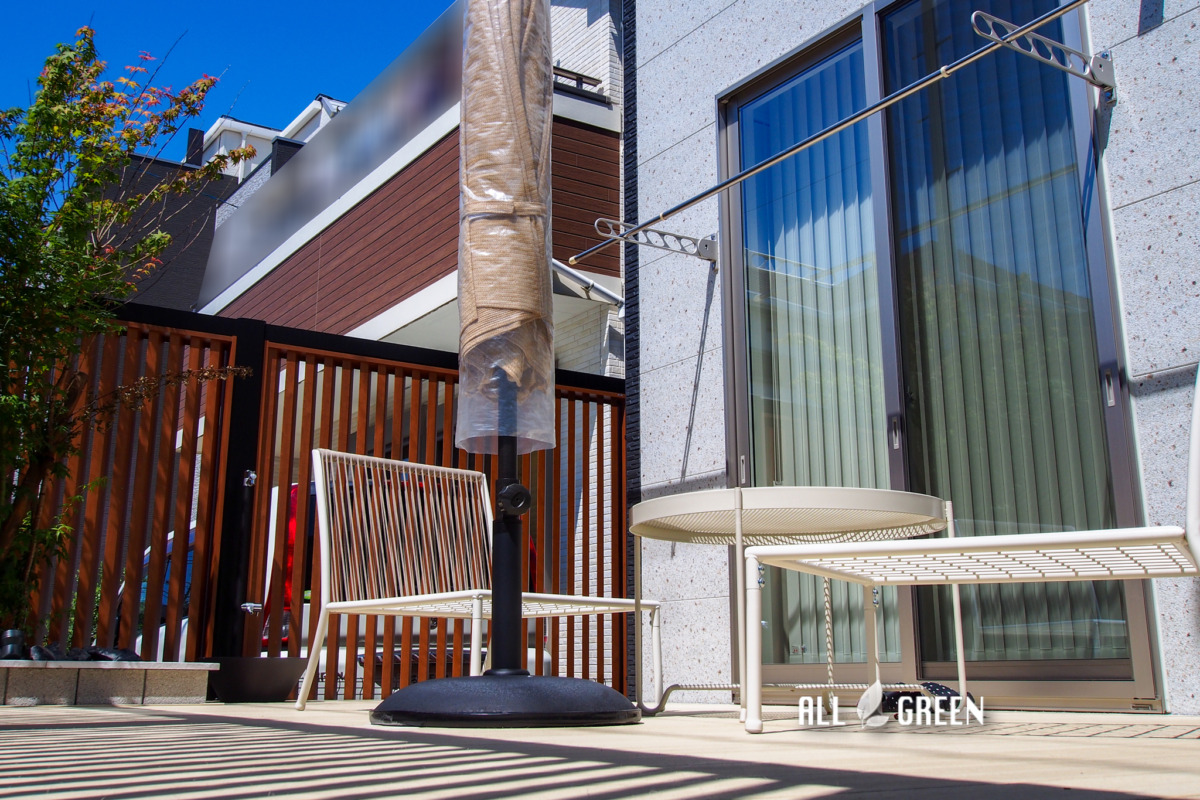 デッキ上に日よけのパラソルとファニチャーが置かれていたので、ご要望にあった外部の視線を気にせずお庭暮らしを楽しめているのかなと・・・!お庭でゆったりと過ごす生活が目に浮かび記事を書きながら嬉しくなりました。