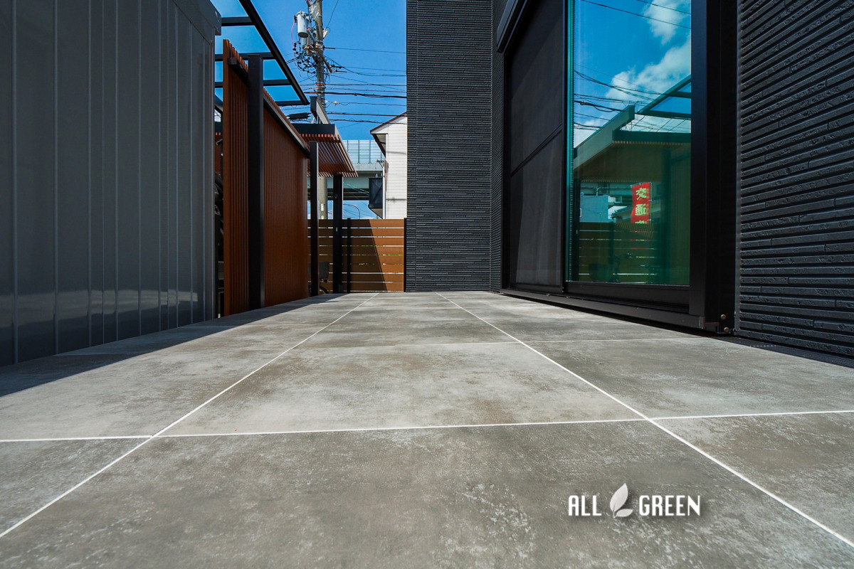 目隠しされた空間には邸宅の掃き出し窓と繋がるような形でタイルテラスが施工されており、ご家族だけのプライベート空間に仕上がりました。