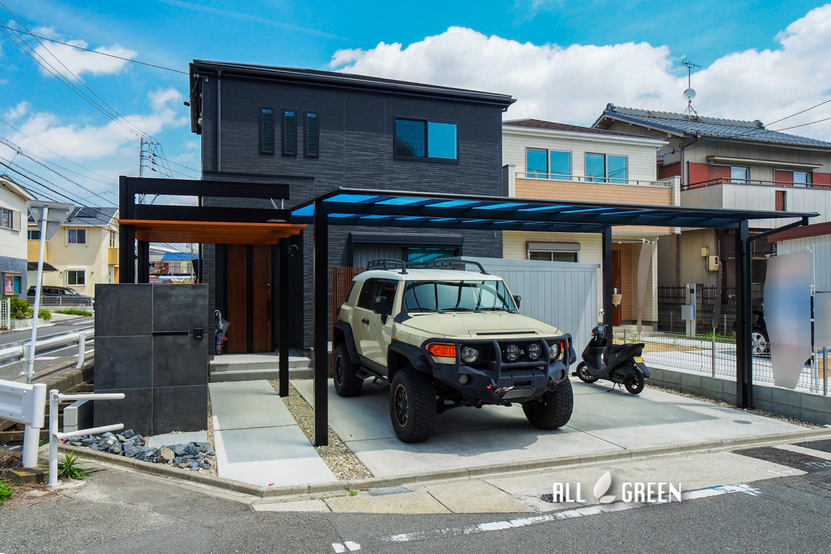 カーポートは常時2台駐車することから2台用のカーポートを。