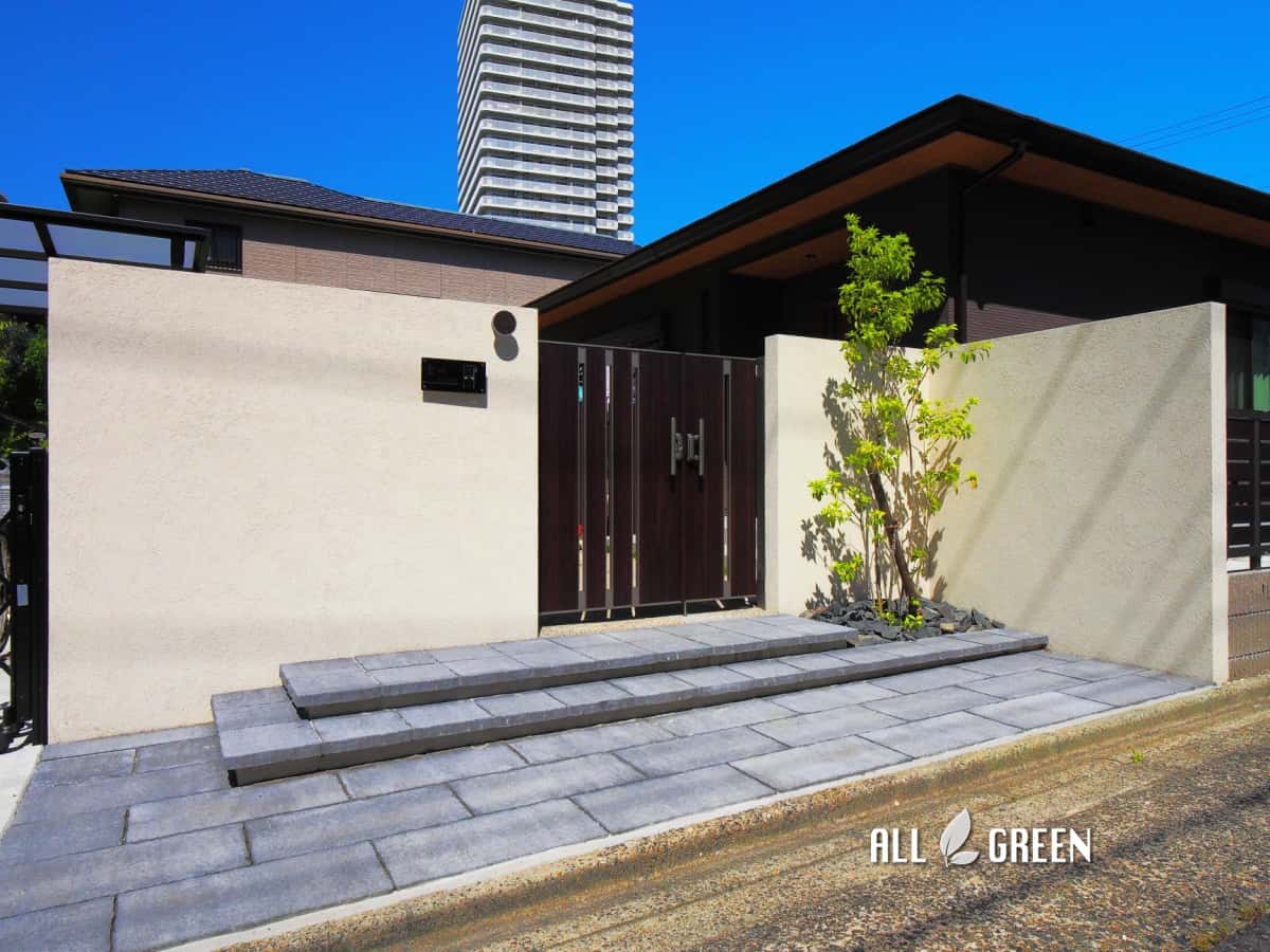 名古屋市東区に佇む木調アルミフェンスと植栽でまとめた新築外構