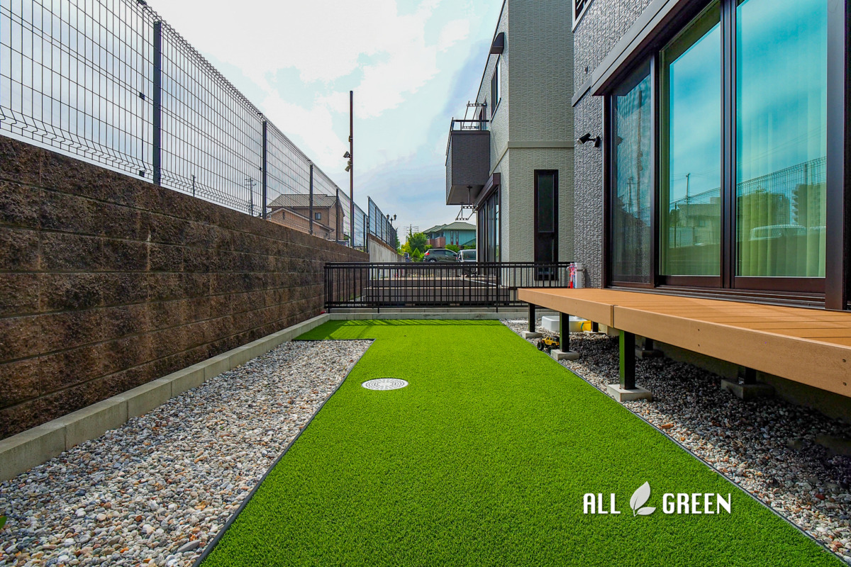 人工芝とデッキで充実したお庭時間を。東海市の新築外構