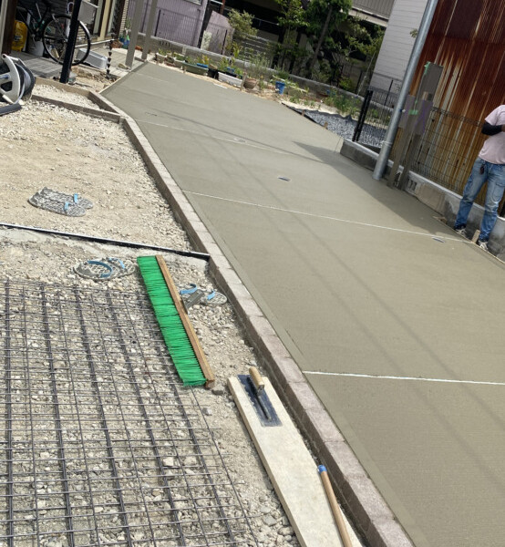名古屋市北区O様邸 土間の様子土間コンクリートの施工です。 面積が多いのと、お客さんの動線確保の為 2回に分けての施工です。 明日、残りの土間コ…