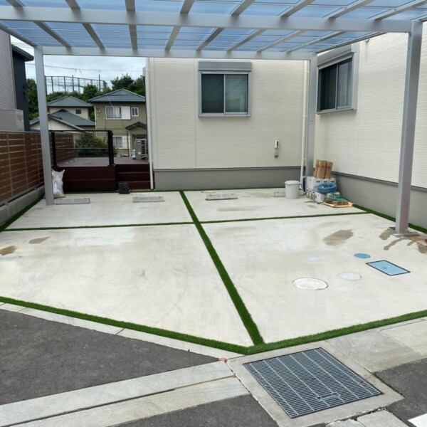 愛知県東浦町I邸 駐車場の目地に人工芝が!?!?…