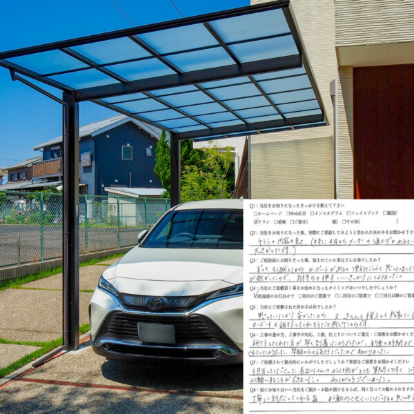 引っ越してから ” あると便利だな ” と思っていたカーポート。オールグリーンのチラシが気持ちを押すいいきっかけになりました。担当者の方のお人柄も施工して下さった方のお人柄もすごくよかったです!愛知県春日井市/N邸Q1:当社をお知りになったきっかけを教えてください ☑ チラシ…