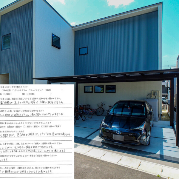 予算よりも高くなってしまいましたが、希望がしっかり反映されたデザインで仕上がりも満足しています。選択肢の1つに入れてみても良いと思うとオススメしたいです!愛知県春日井市/T邸Q1:当社をお知りになったきっかけを教えてください ☑ 看板…