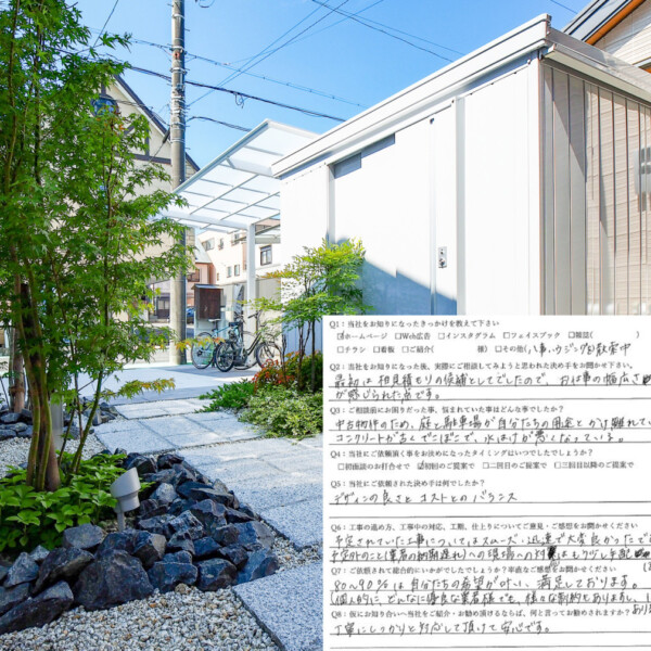 庭作りに特化していて素敵な外構が出来そうだったのでオールグリーンに相談をしました。デザインや価格はよかったけど、工事中道路にはみ出したりお隣の敷地にはみ出てしまっていることが気になりました。岐阜県岐阜市/S邸Q1:当社をお知りになったきっかけを教えてください ☑ ホームペー…