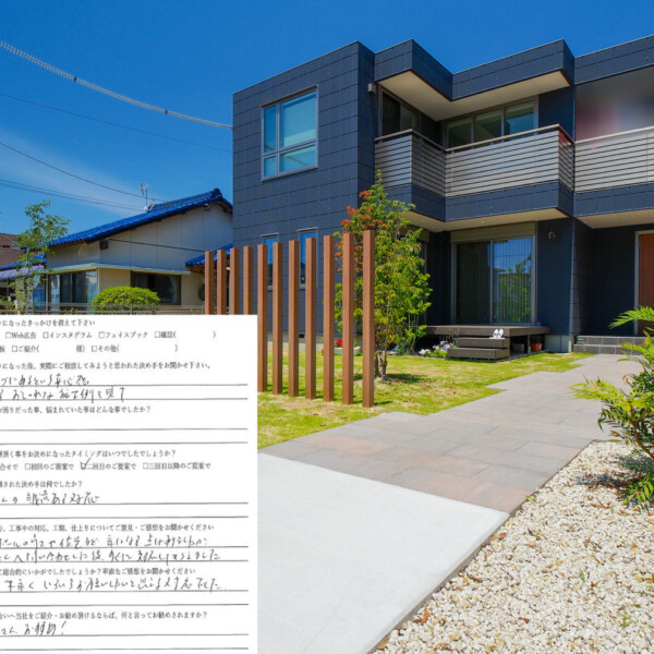 他者にも見積りをとっていましたが余分な箇所を取り除いて頂いたことで、他社よりかなり良心的なお値段になりました。営業担当さんも職人さんもとても話しやすく人柄の良い方で良い業者に頼めて良かったです!愛知県春日井市/K邸Q1:当社をお知りになったきっかけを教えてください ☑ その他(…